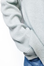 このニットに関しては、ジャストサイズで着るよりも、このたっぷりとした分量を活かして、オーバーサイズで風を孕むように着こなすのが正解でしょう。