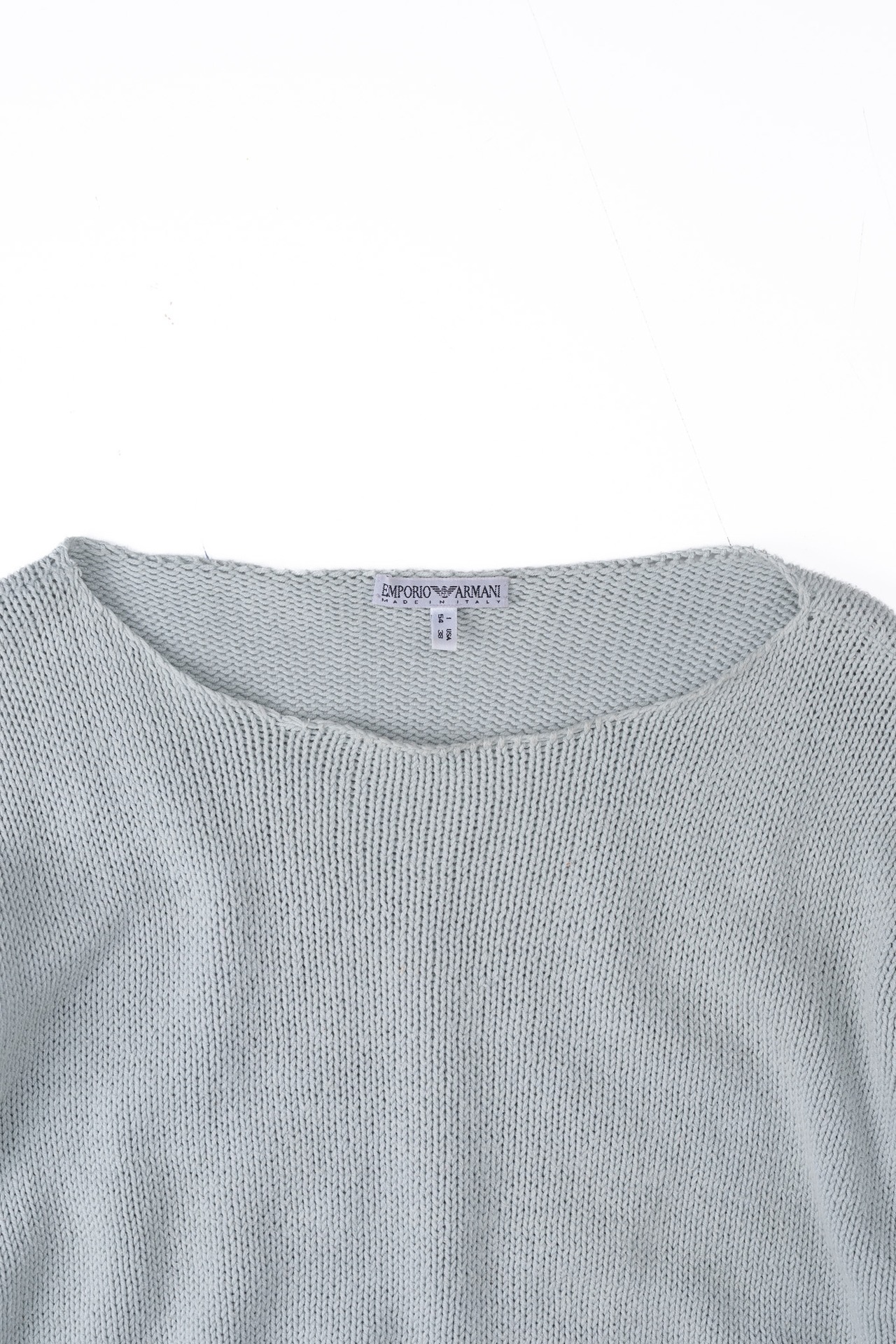 今回ご紹介するのは、そんなアルマーニのカジュアルラインである「EMPORIO ARMANI」より、90年代後半から2000年代初頭にかけて製造されたと思われる、極めて完成度の高いコットンニットです。