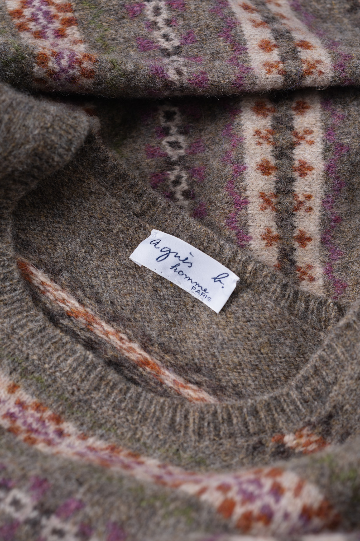今回ご紹介するのは、そんなアニエスベーの哲学が、伝統的なフェアアイル柄という形を借りて表現された、極めて美しい一着です。