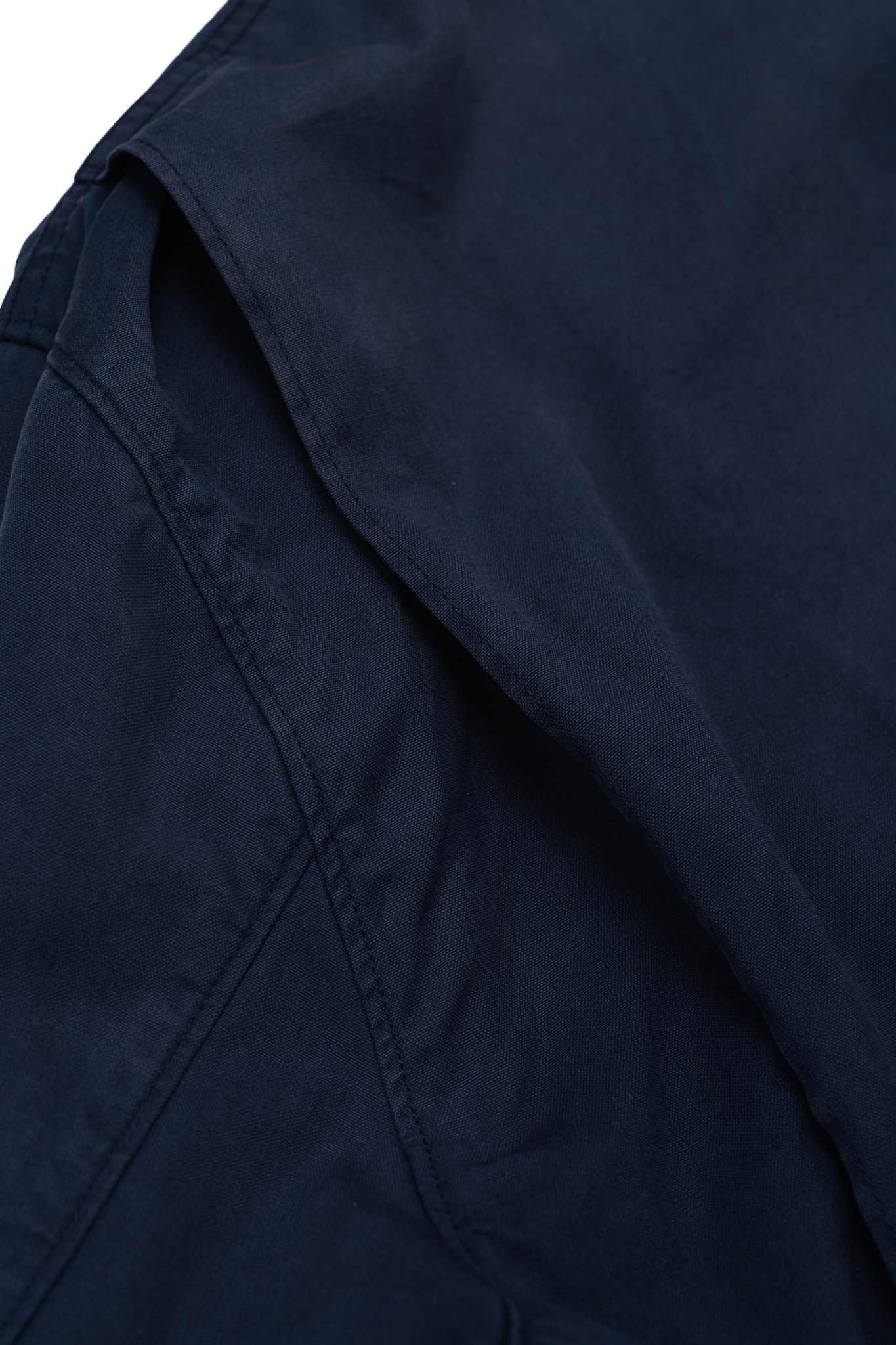 深いネイビーに染まった生地を注視すると、その色が決して均一ではないことに気づかされます。