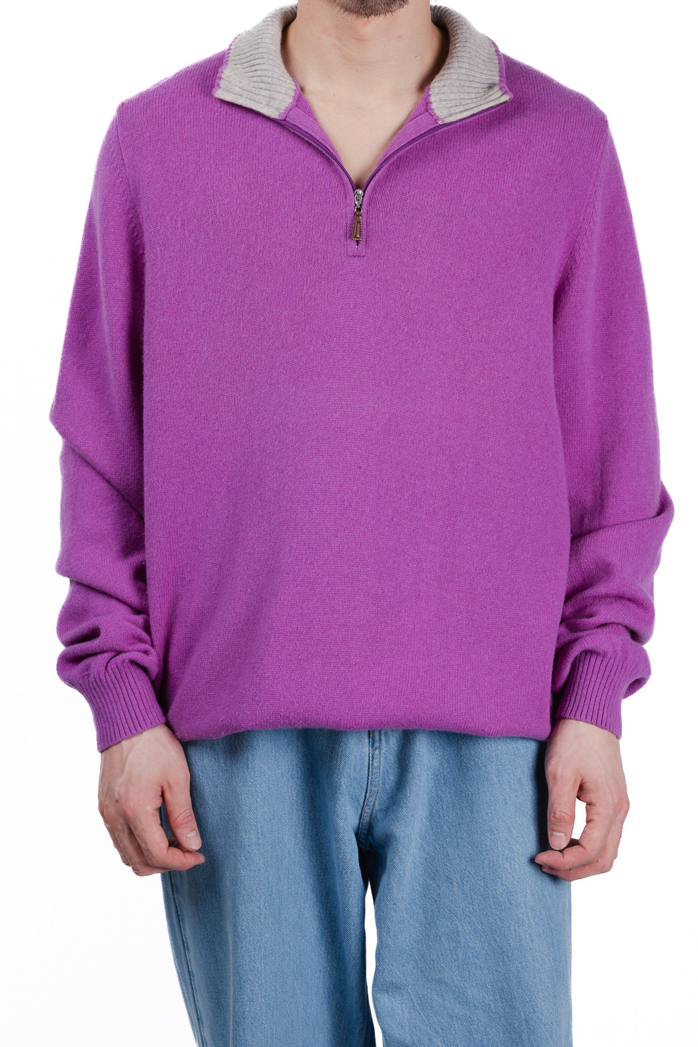"Gran Sasso" Ultrafine Merino & Cashmere Half-Zip Knit with Contrast Collar (Made in Italy)