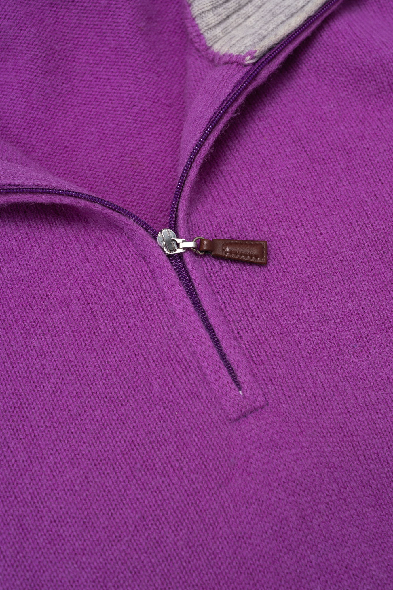 ジッパーの引き手にはブラウンレザーがあしらわれ、金属の冷たさを和らげると同時に、細部への配慮を物語っています。