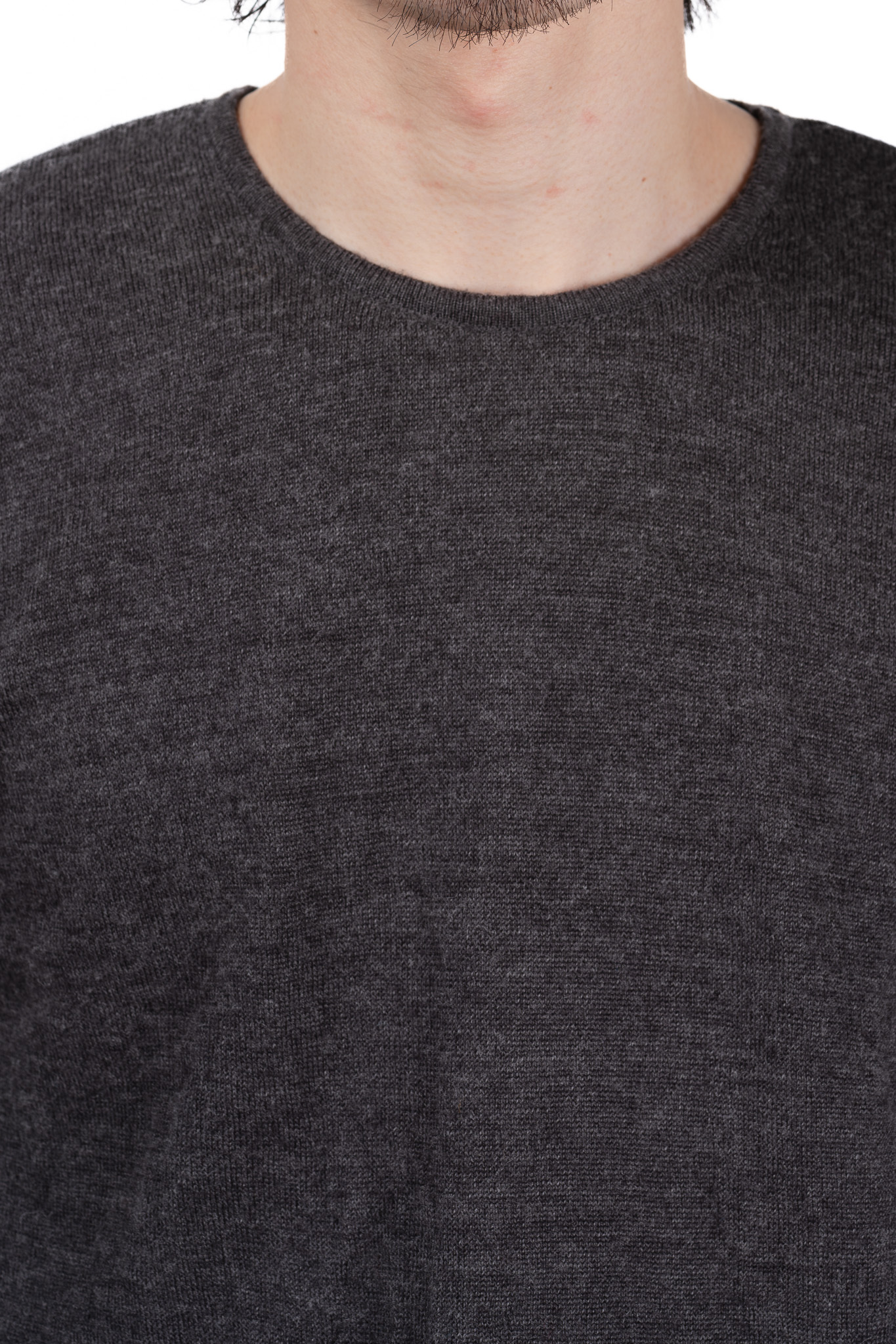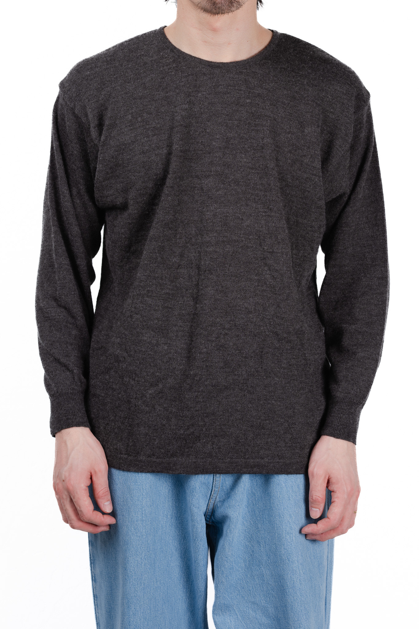 このチャコールグレーのニットは、そうした条件を満たしながらも、一般的なセーターとは明確に異なる構造を持った一着です。