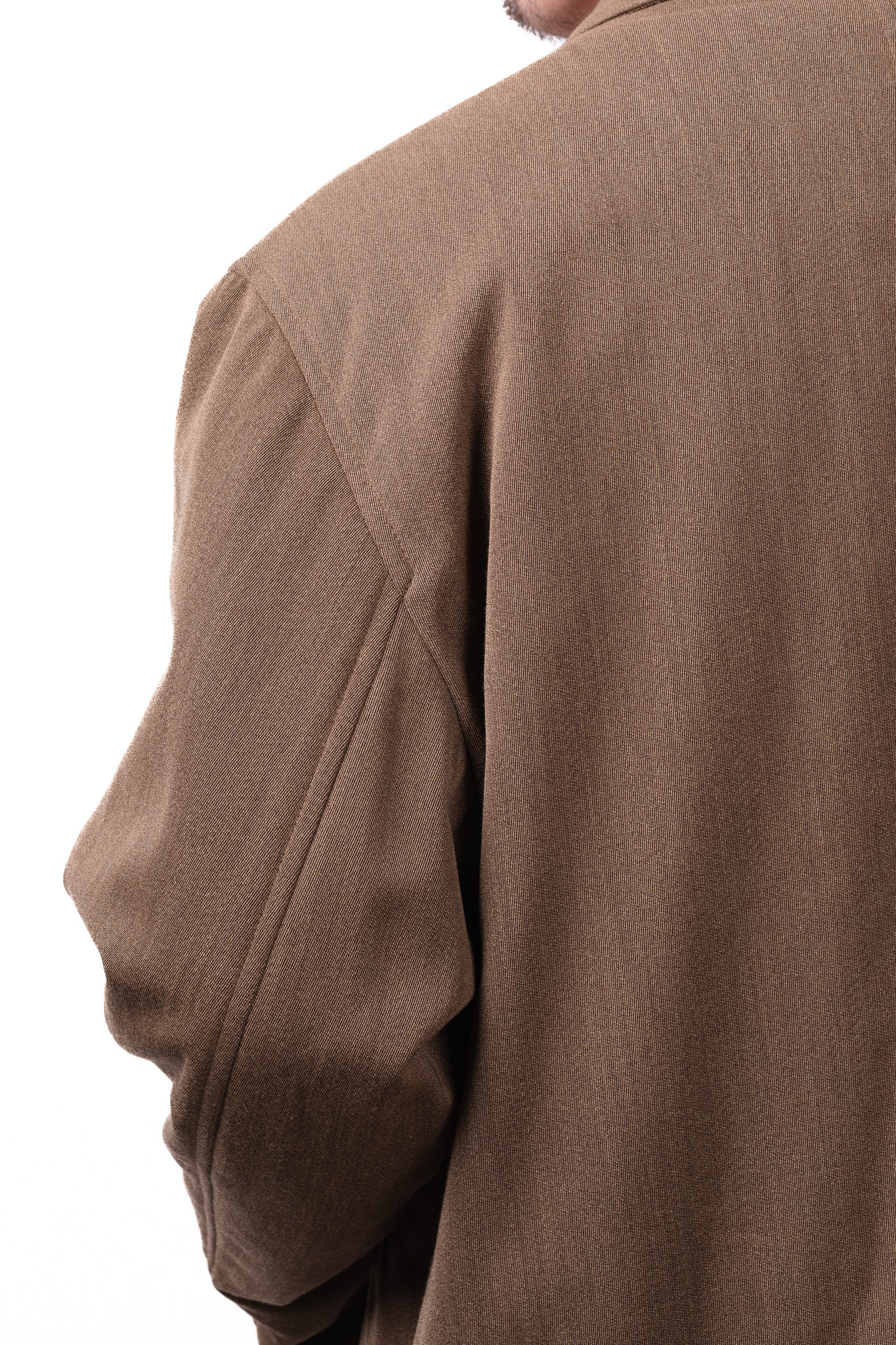 肩周りは前から見ると端正なセットイン、豊かな分量を持たせた設計により、ジャケットの上から羽織っても肩が張ることなく、流麗な落ち感を実現しました。
