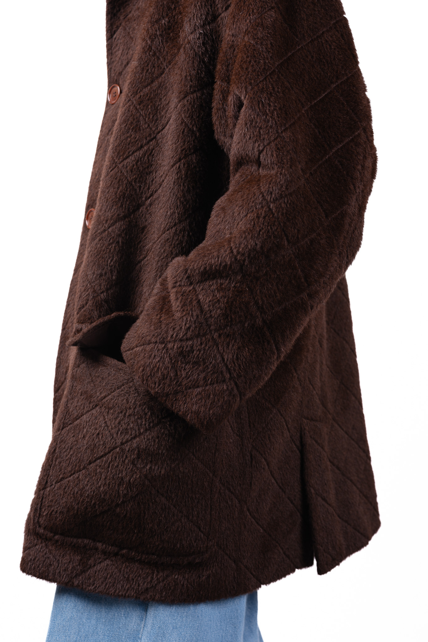 毛足の長い素材をただ平面的に仕立てるのではなく、ステッチによって抑揚をつけることで、本来スポーティな意匠であるキルティングを、極上のエレガンスへと塗り替えてしまいました。