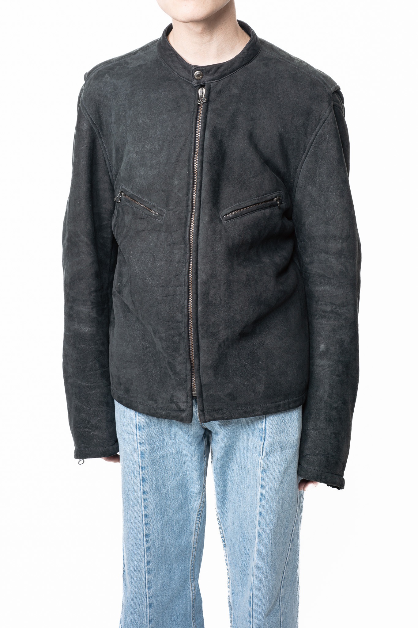 [circa2000] "HELMUT LANG" Black Shearling Riders Jacket (Made in Italy/Original Lang era.)