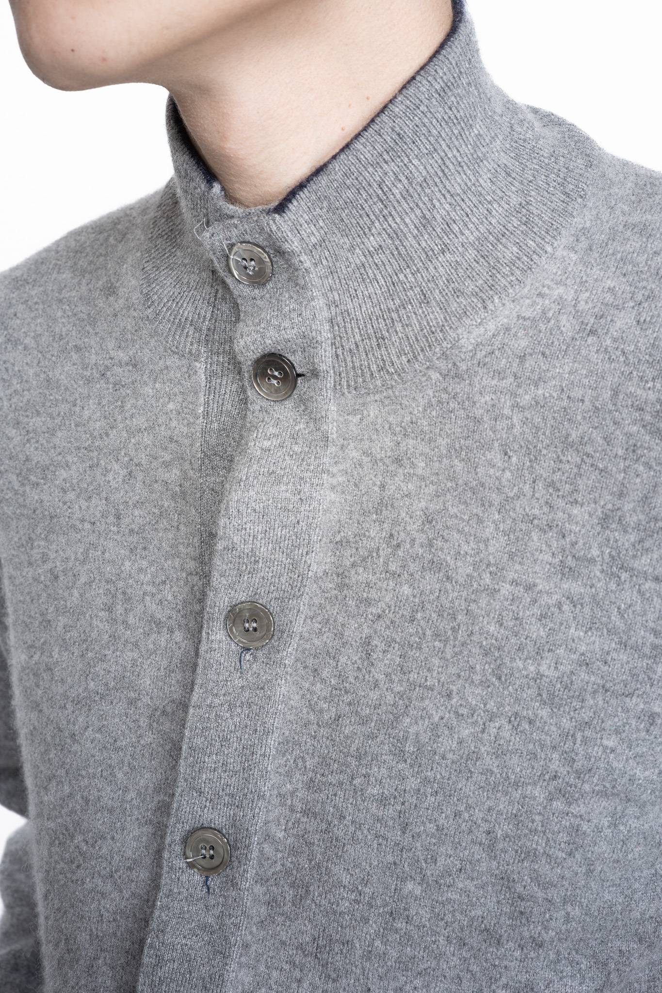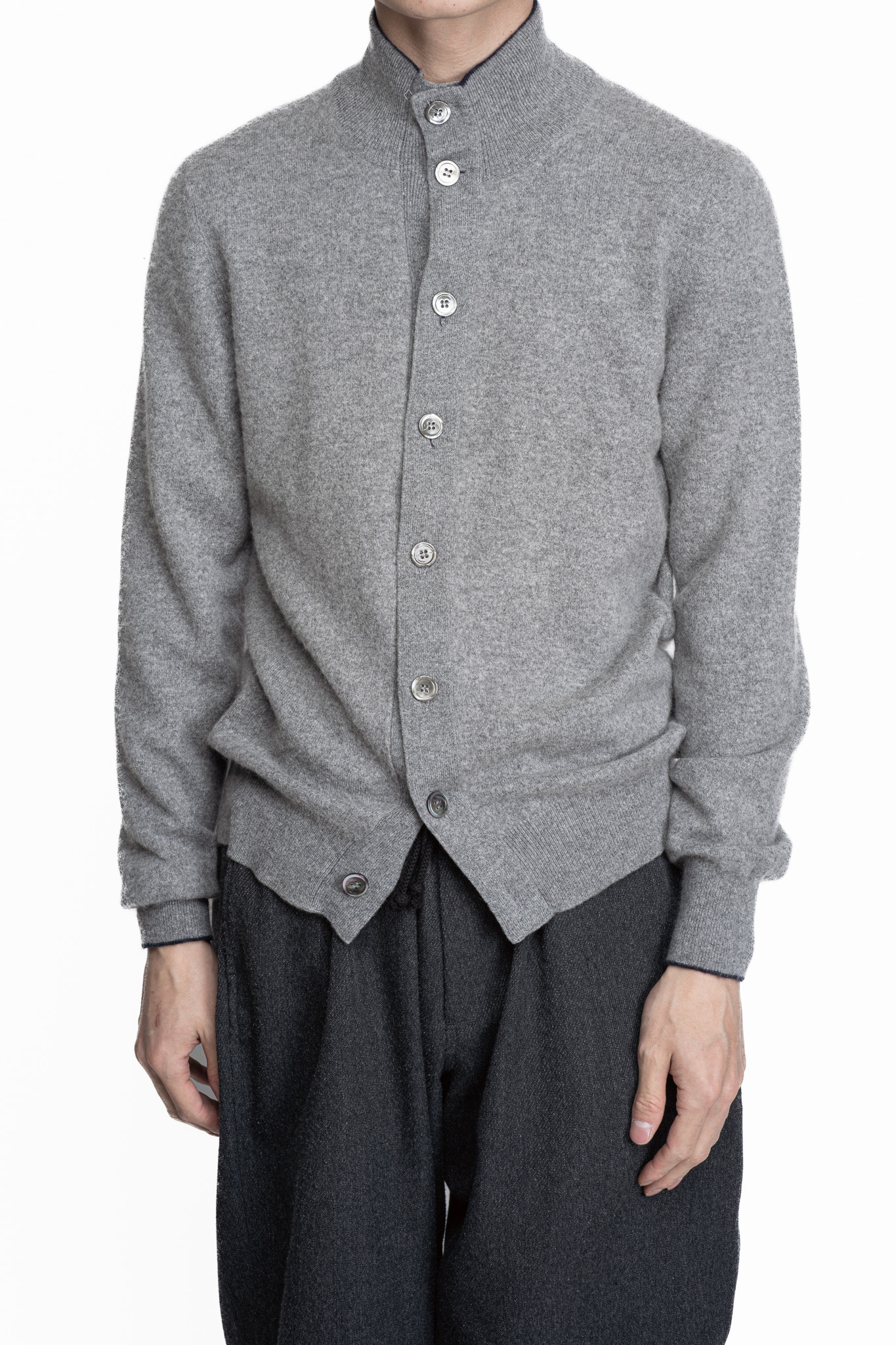 ジャケットにもカーディガンにも成り得るスタンドカラーのフルボタン仕様。