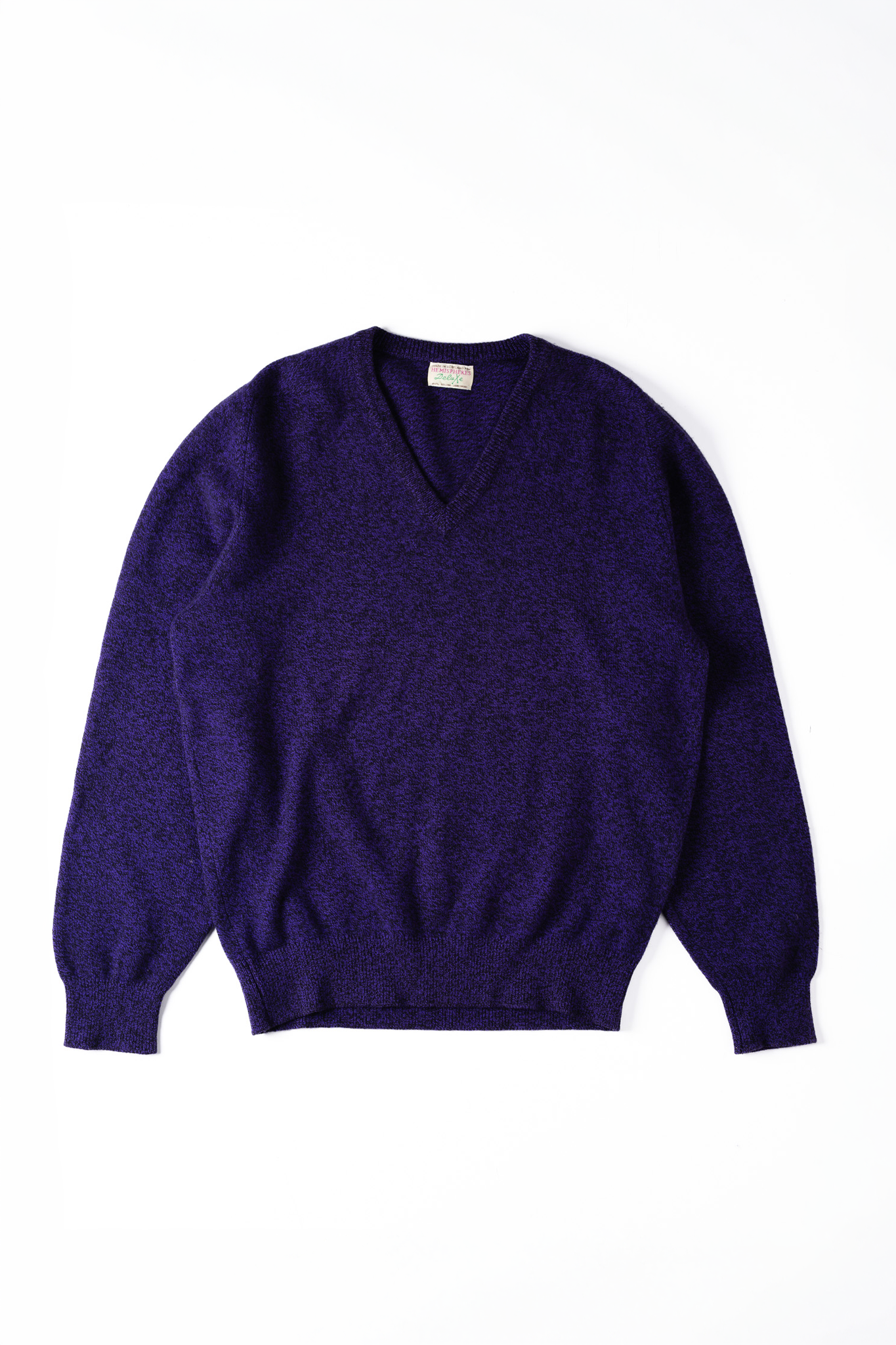 [Late 1980's] "HEMISPHERES" Melange Geelong Lambswool V-Neck Knit (Made in Scotland)