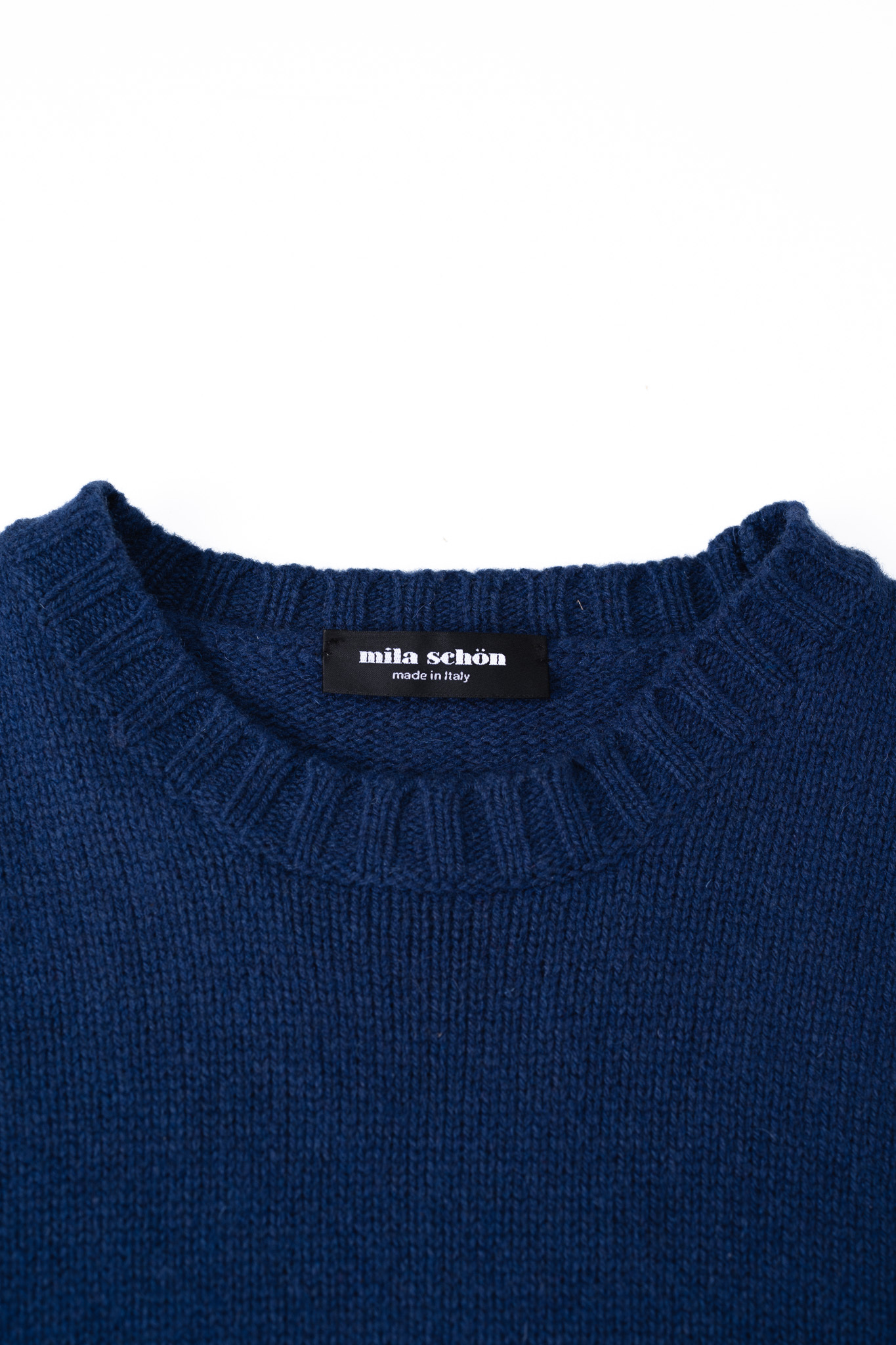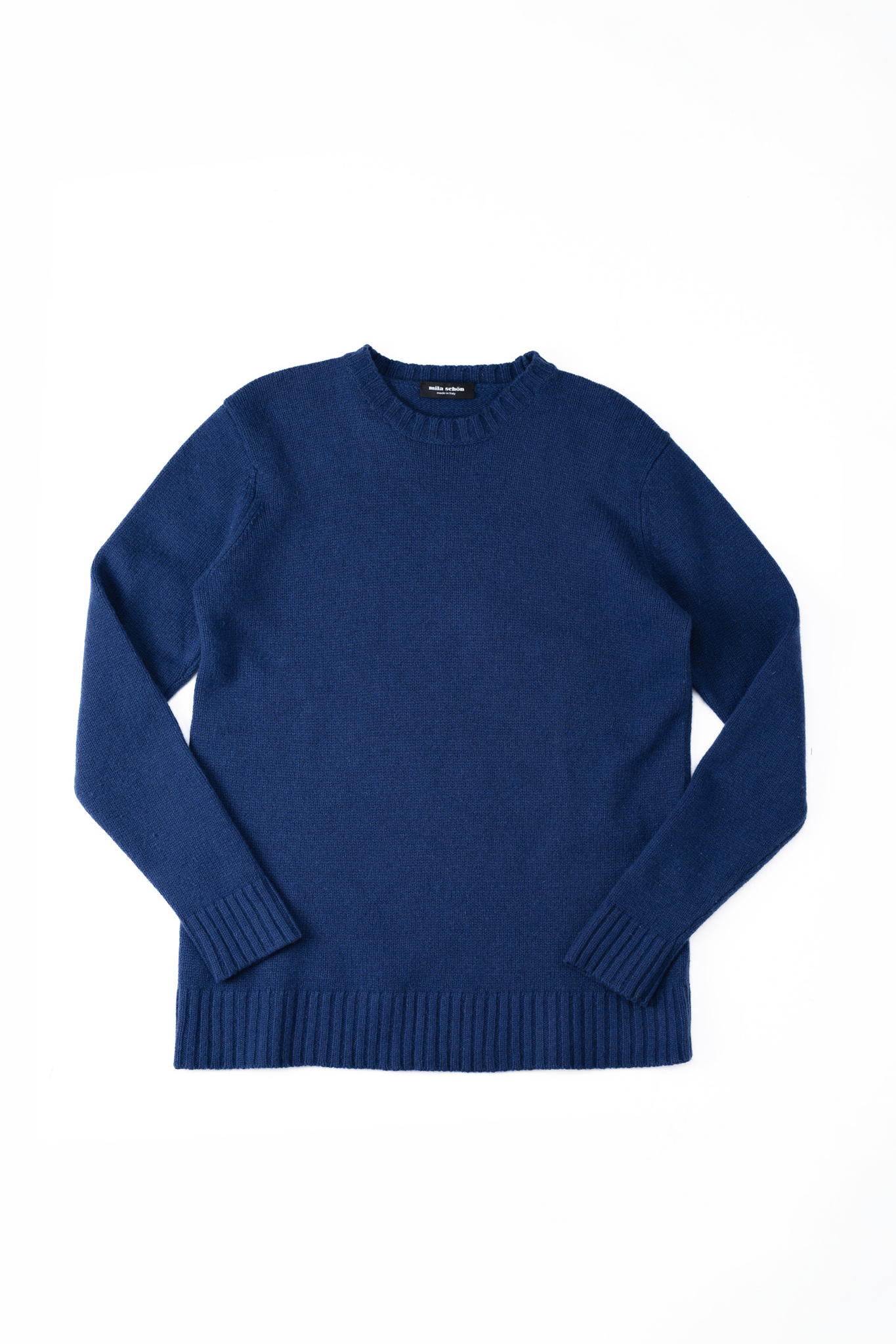 本作は、そんなミラ・ショーンのストイックな哲学がクルーネックニットという極めて普遍的なフォーマットの中に完全に凝縮された、美学の結晶とも言えるプロダクションでございます。