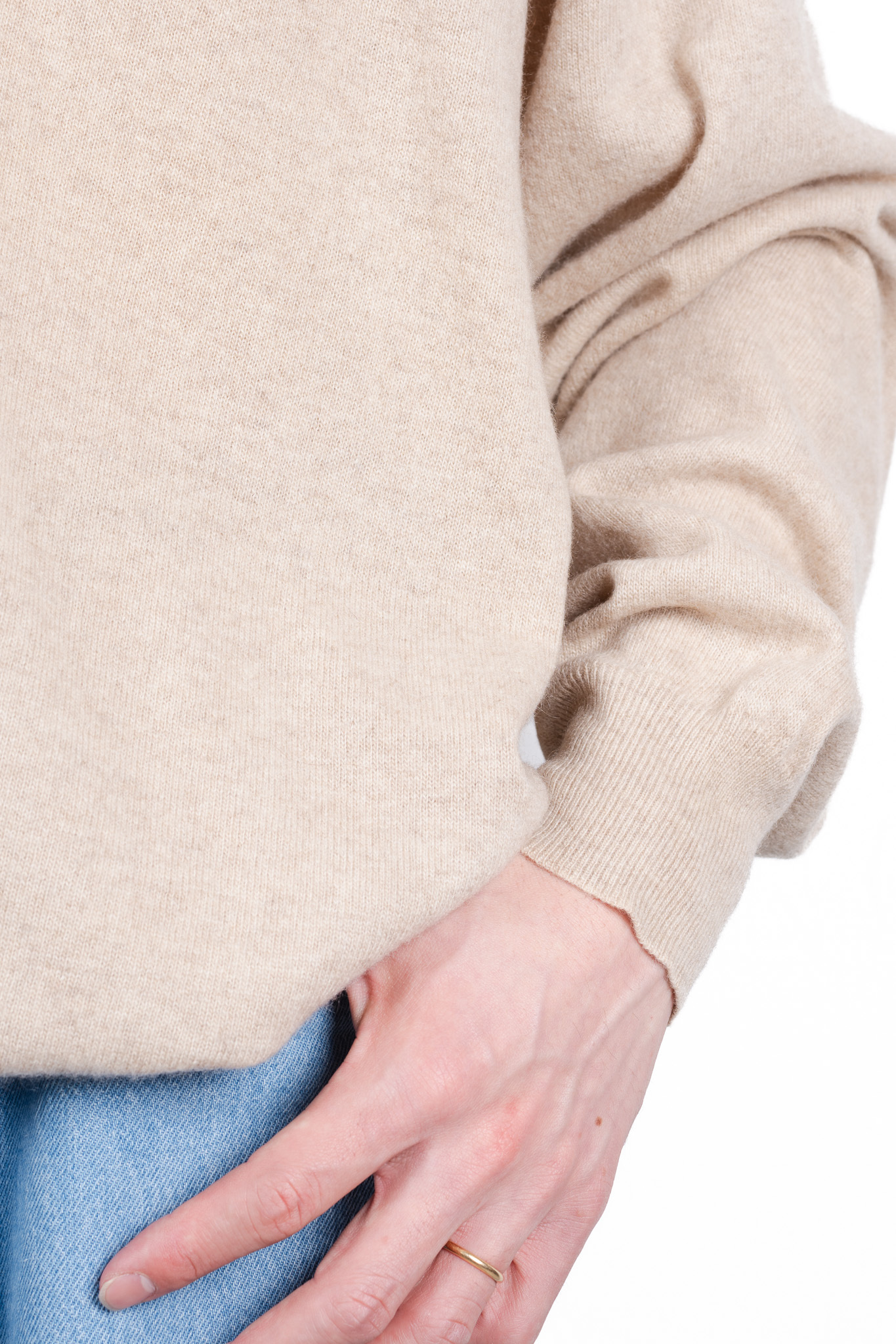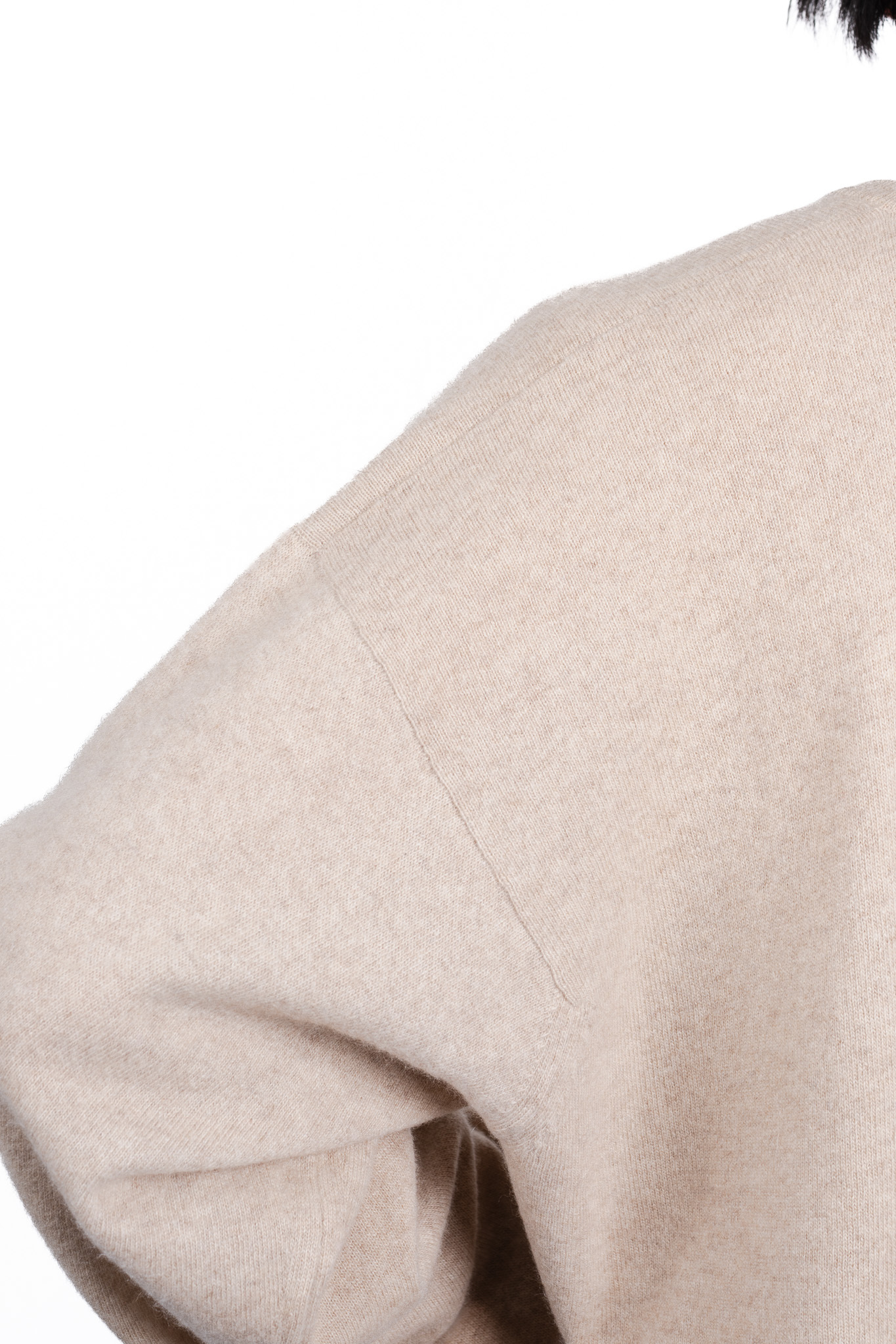 身幅やアームホールにゆとりを持たせた設計は、高密度のカシミヤと相まって立体的なドレープを生み出します。