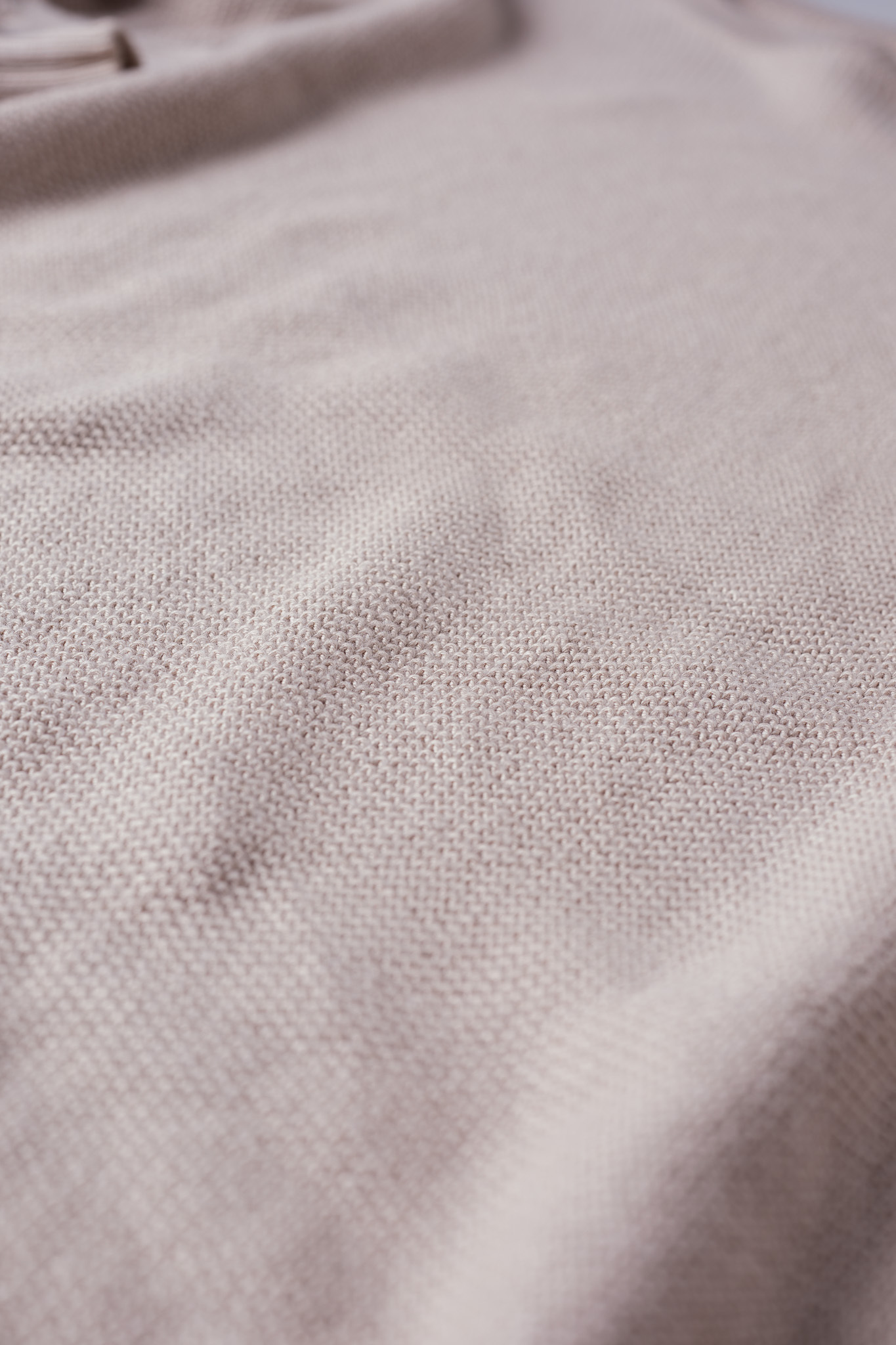 さらに特筆すべきは、この鹿の子編みによる立体的なテクスチャーが、ヴィスコースの持つ光沢を細かく乱反射させること。