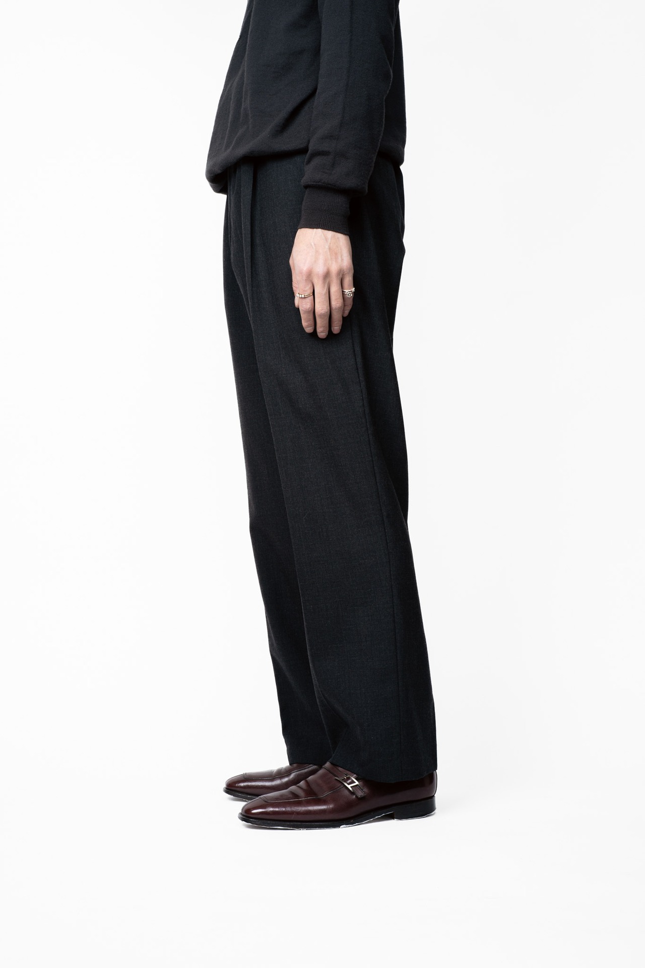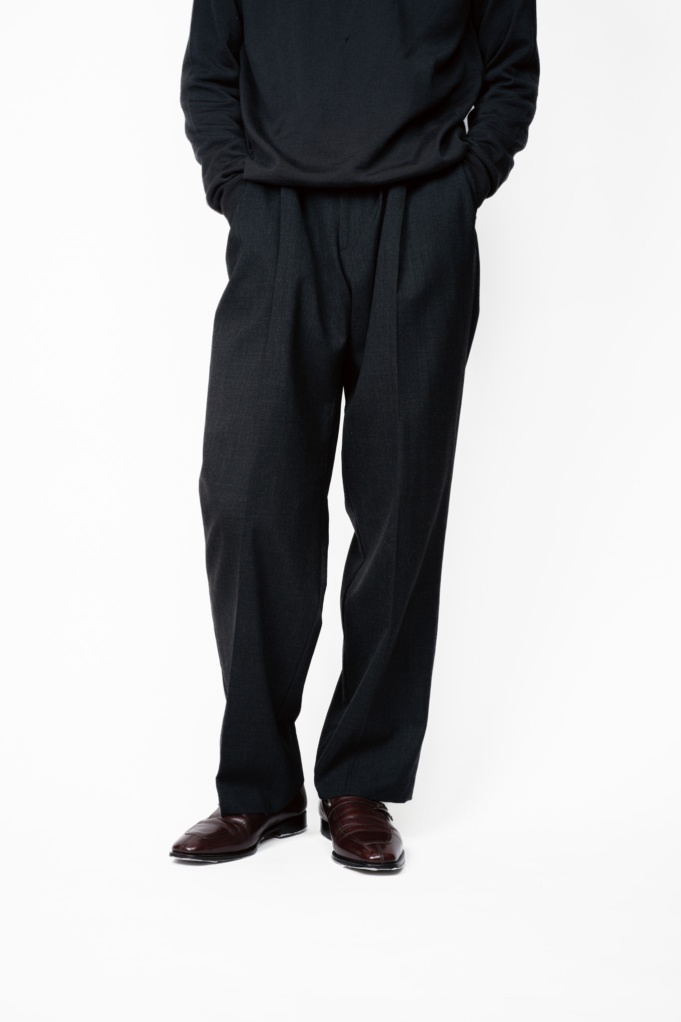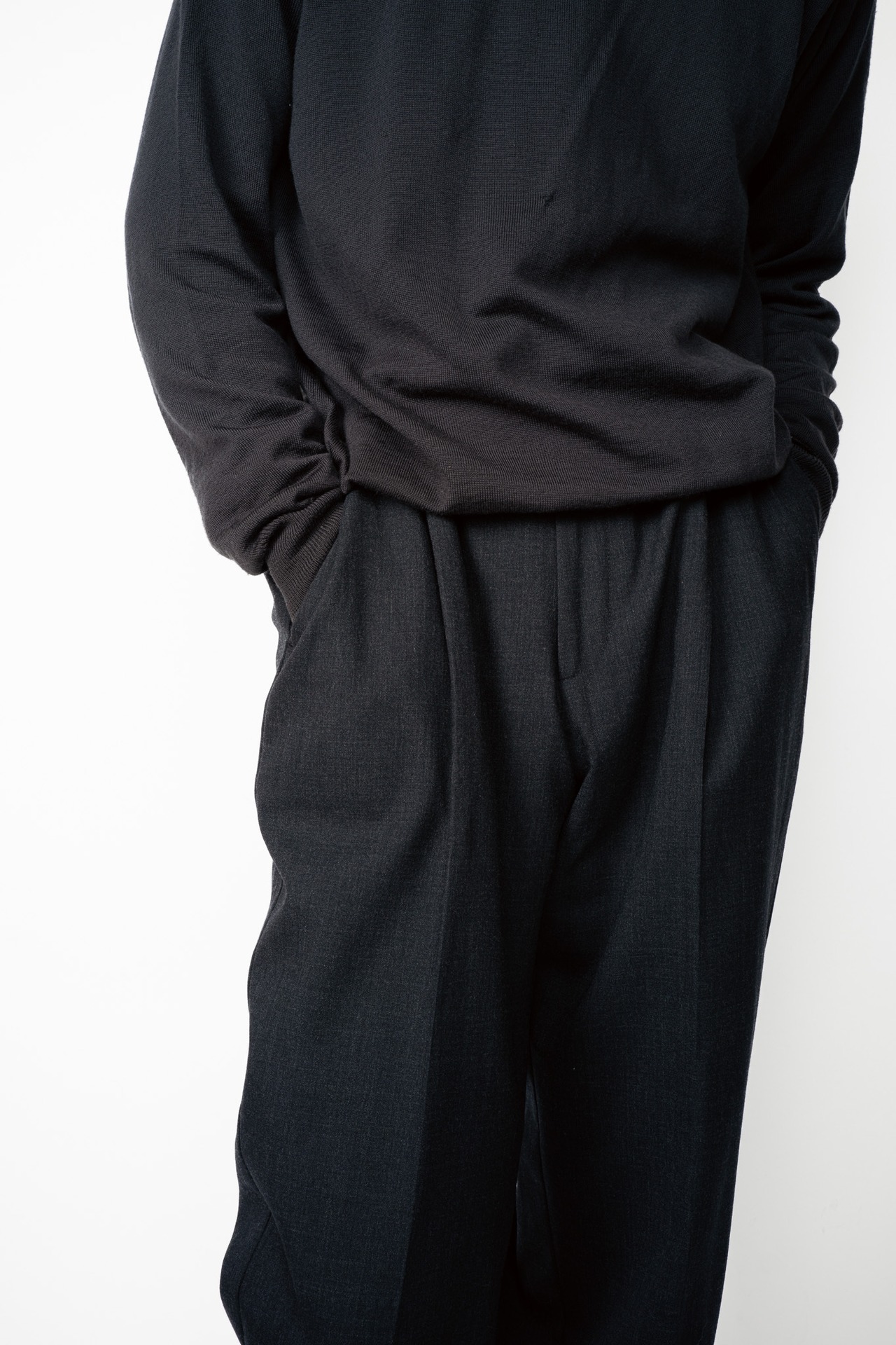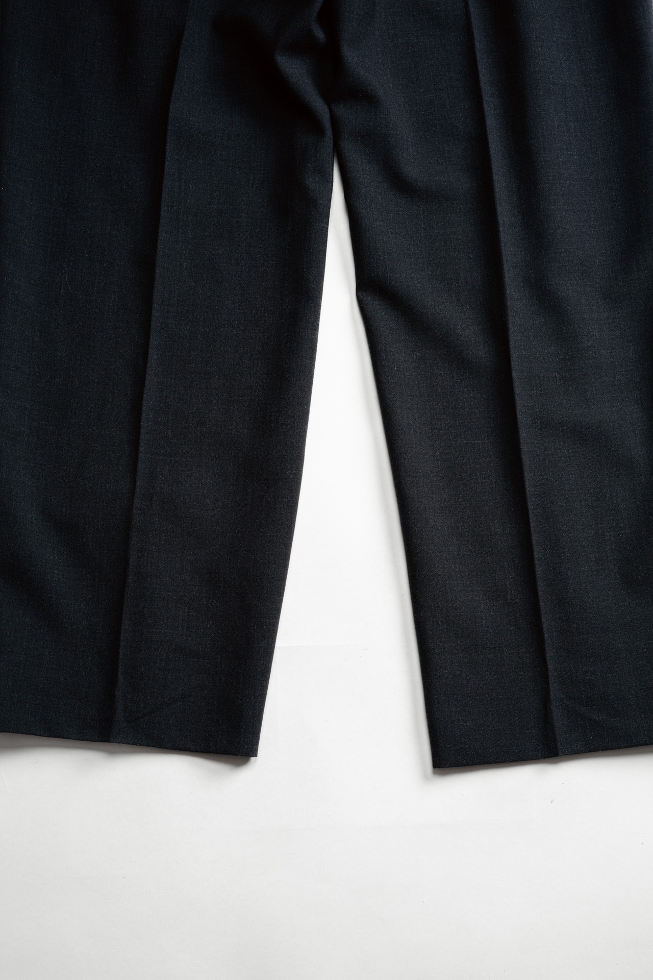 それを崩さずむしろ活かすかのように緩やかに掛けられたテーパードは、クラシックさも感じられますが、どちらかと言えば現行のようなモダンな空気を孕んでおります。