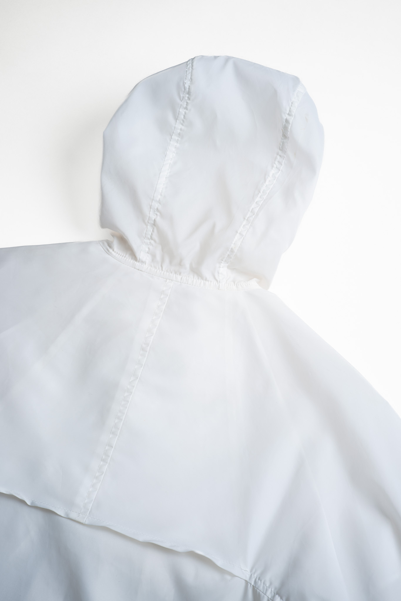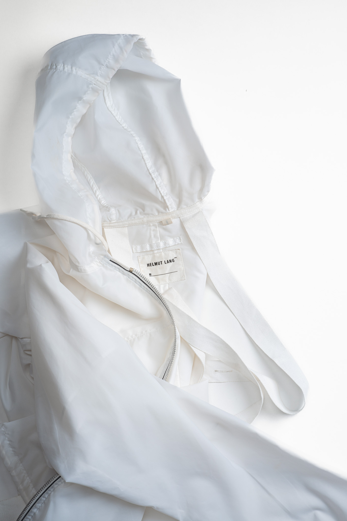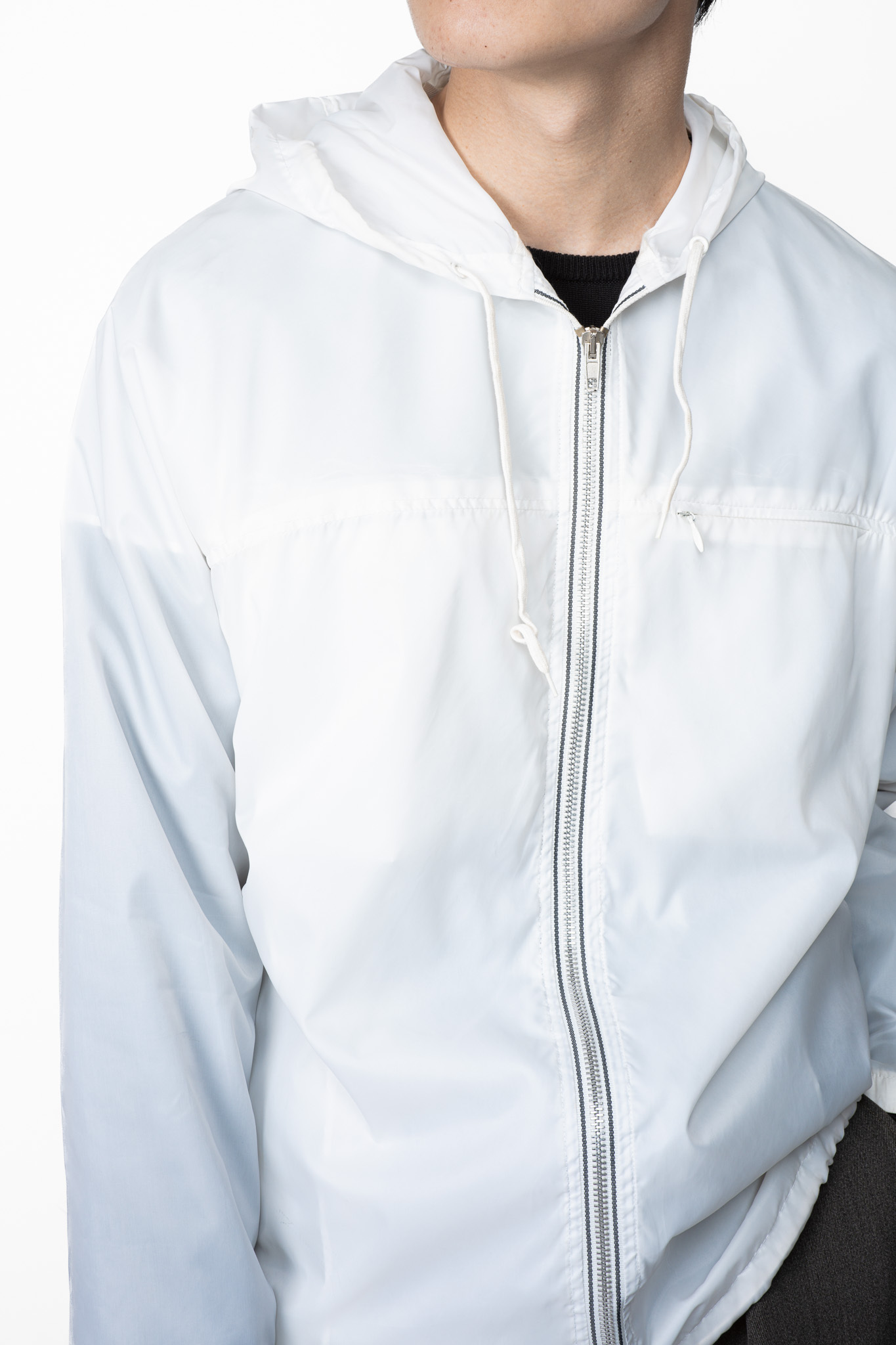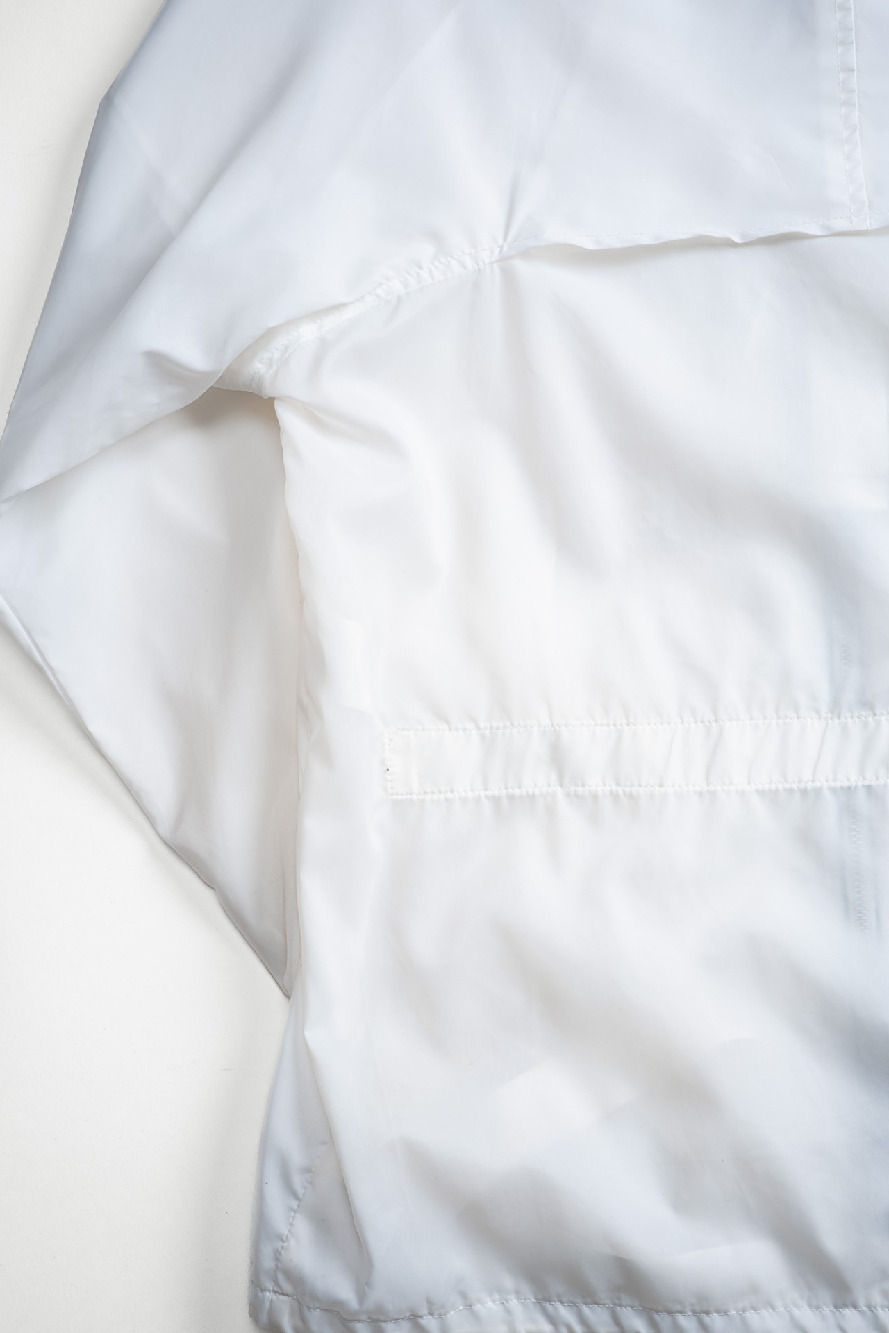透けるほどに薄く、風にはためくほどライトなナイロン生地はクリーンなピュアホワイトが選定され、まさにミニマルそのものの様相を呈しております。