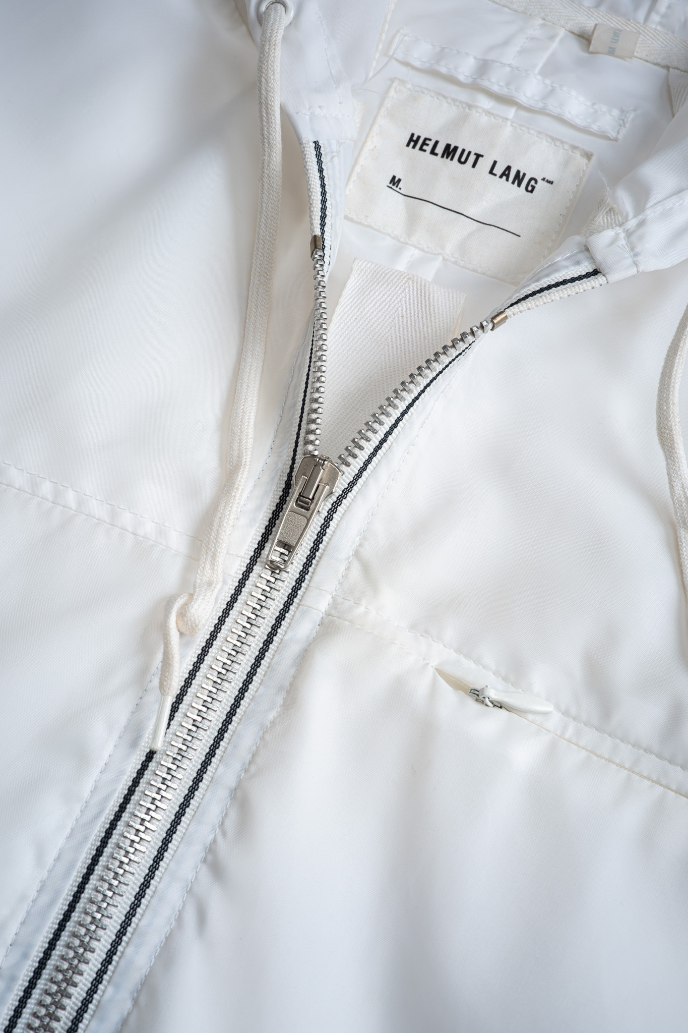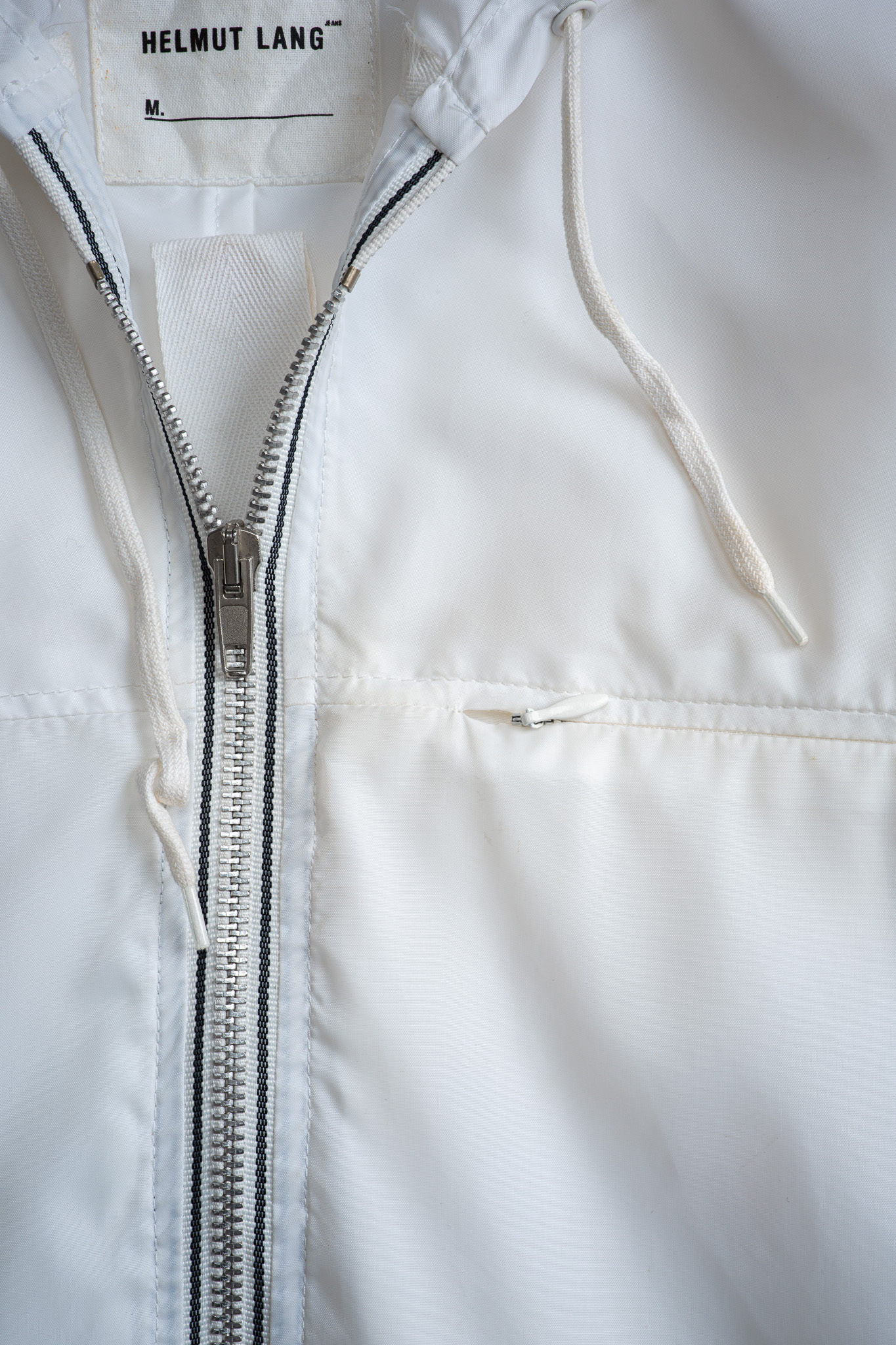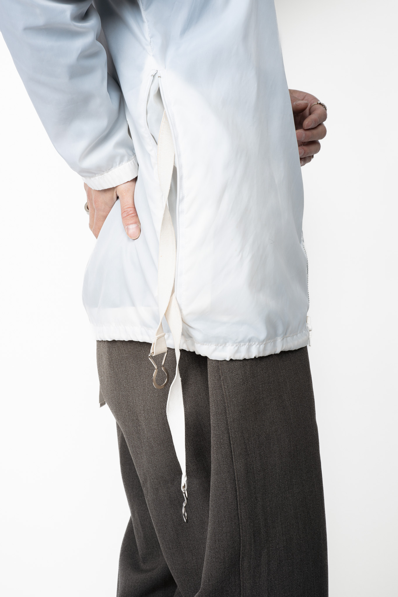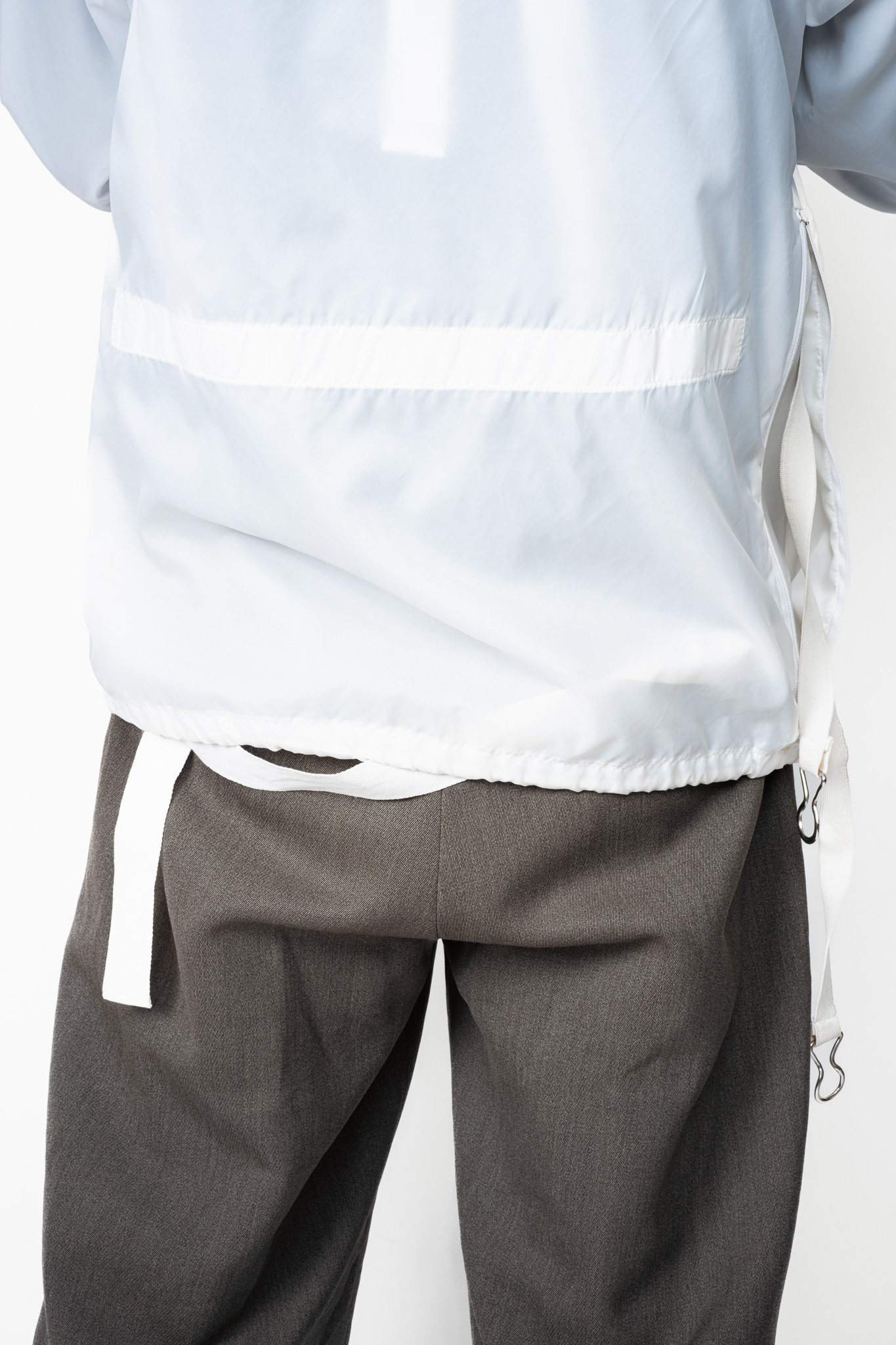 透けるほどに薄く、風にはためくほどライトなナイロン生地はクリーンなピュアホワイトが選定され、まさにミニマルそのものの様相を呈しております。