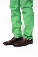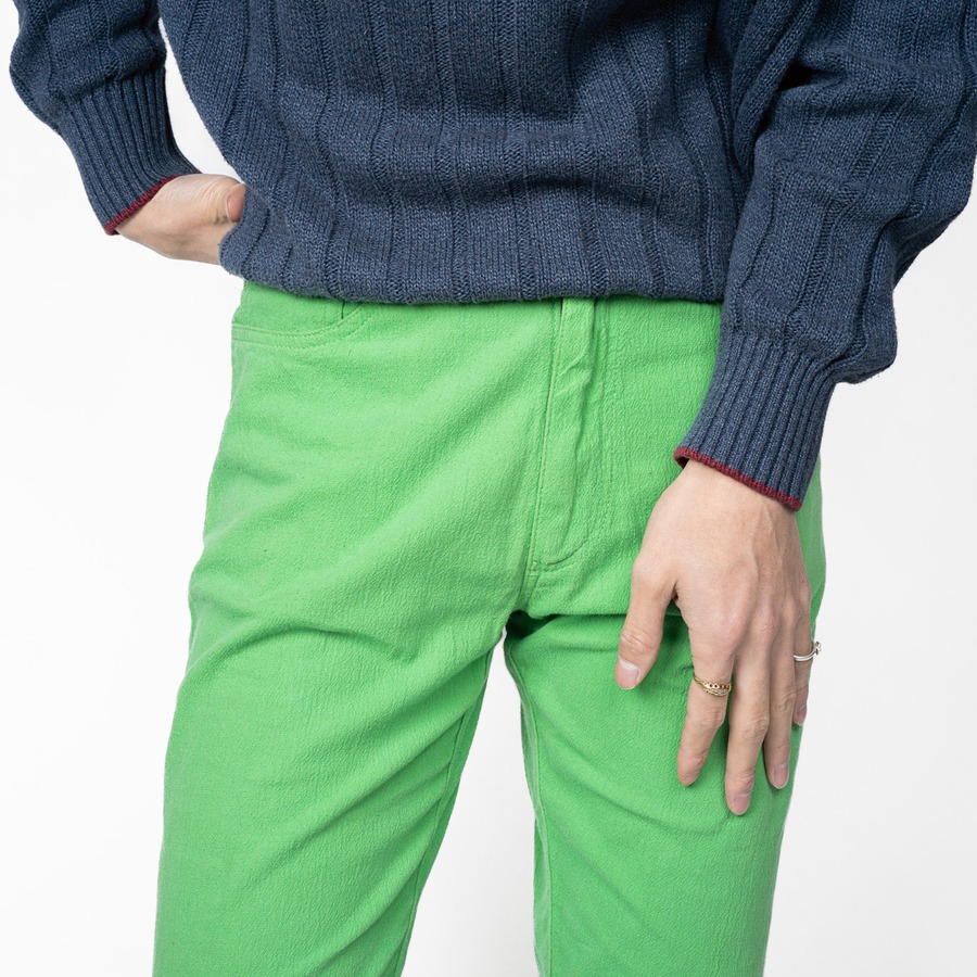 オーセンティックな5ポケットパンツをベースとしながら彼の手にかかると全くの別物に。