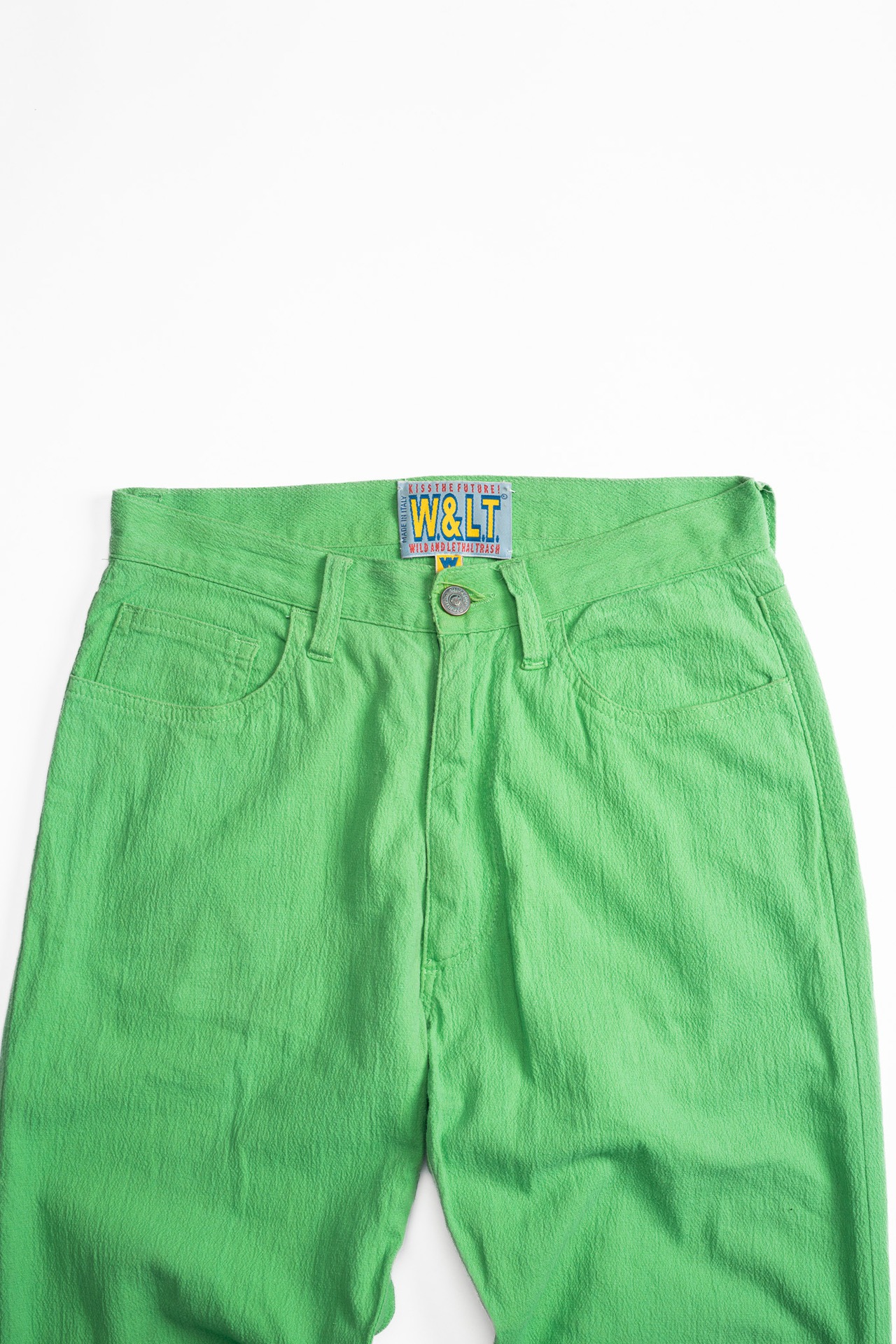 [’90s] “W.&.L.T.(Wild And Lethal Trash)” Shrink Fabric 5-Pockets Pants (Made in Italy)