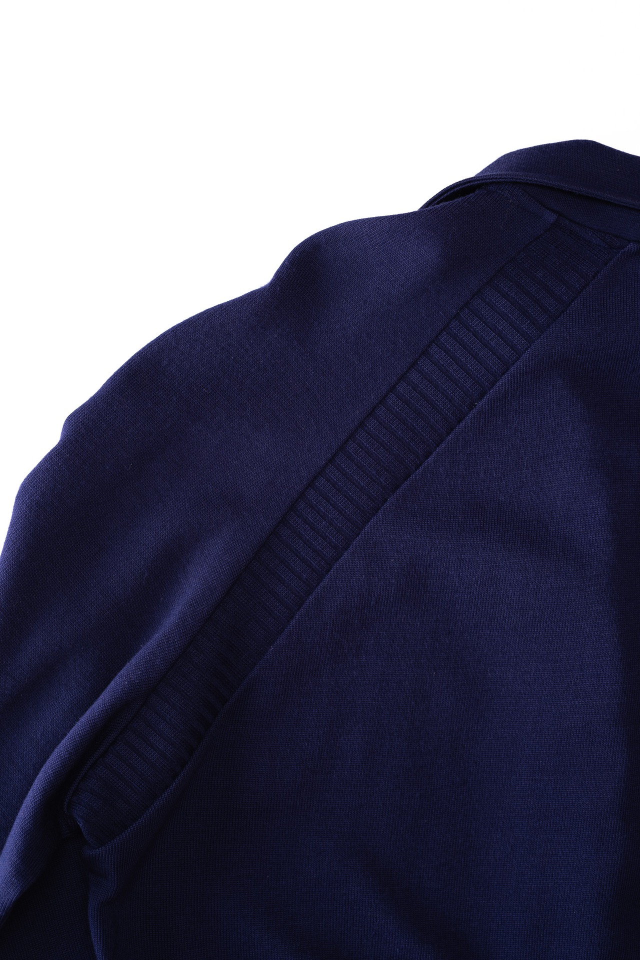 肩から腕にかけてはラグランスリーブを採用し、可動域を確保しながら、滑らかな肩のラインを形成しています。