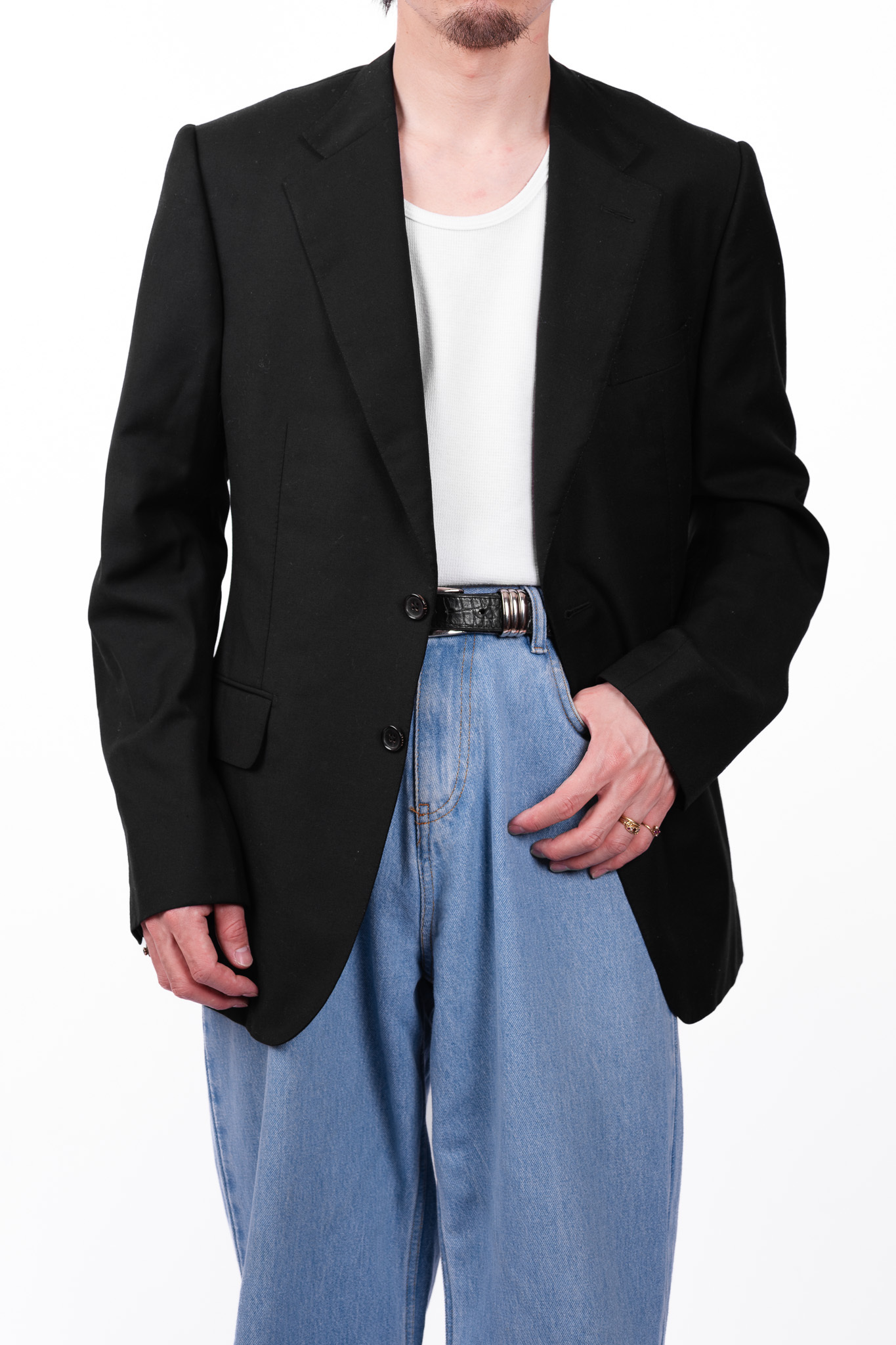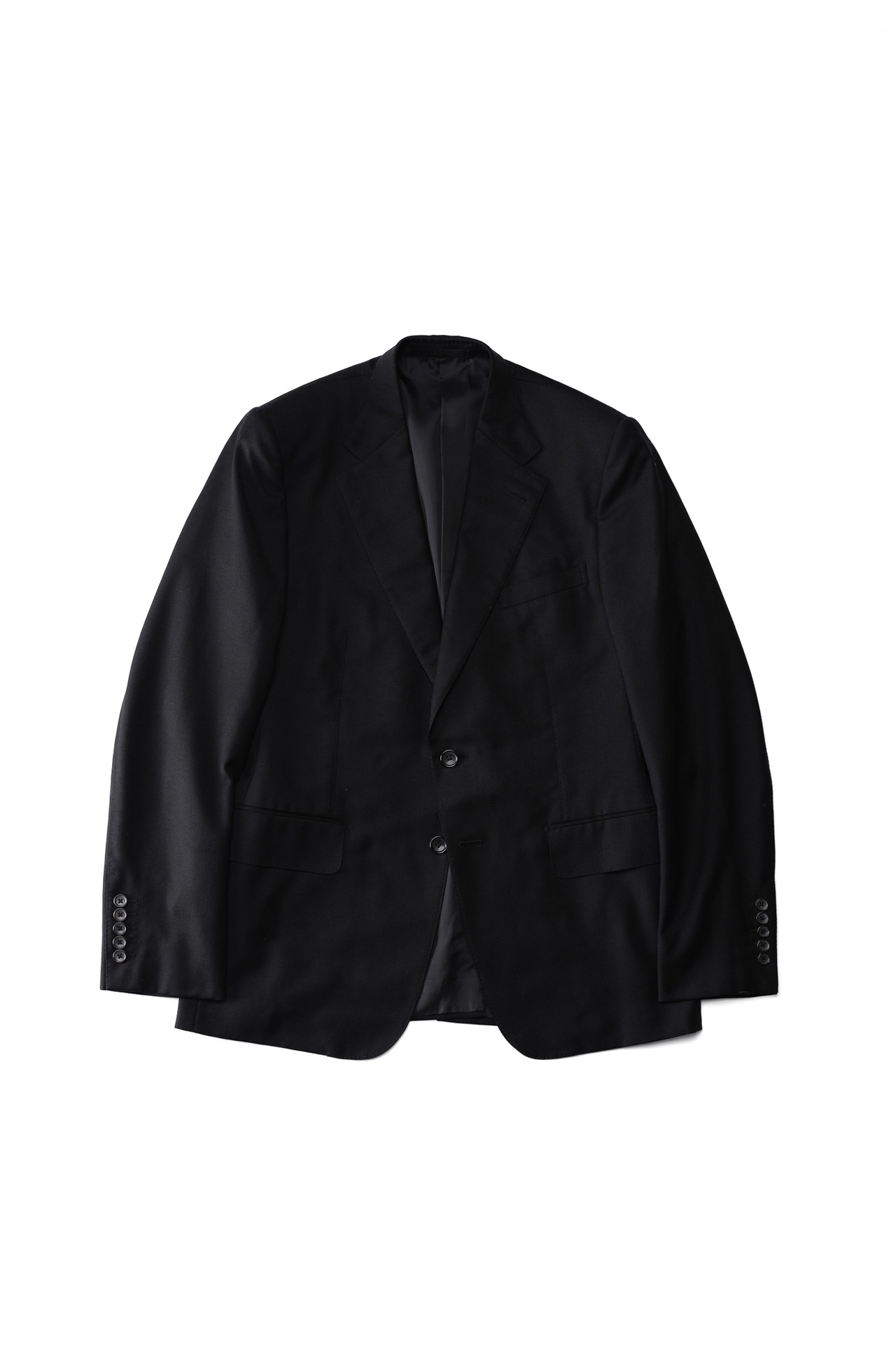 また、5つボタンという仕様自体が持つわずかな違和感が、クラシックなテーラードの文脈に対する意識的なズレを生み出し、トム・フォードらしいモダンな緊張感を付与しています。