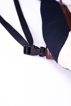 一方で、着用者の身体に直接触れる背面パネルには、クッション性と通気性に優れたフルメッシュ素材を採用。