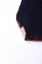 異素材の境界線となる縫製も極めて美しく、立体的なバッグのフォルムを崩すことなく、異なる性質の生地を一つにまとめ上げる熟練の技術はさすがです。