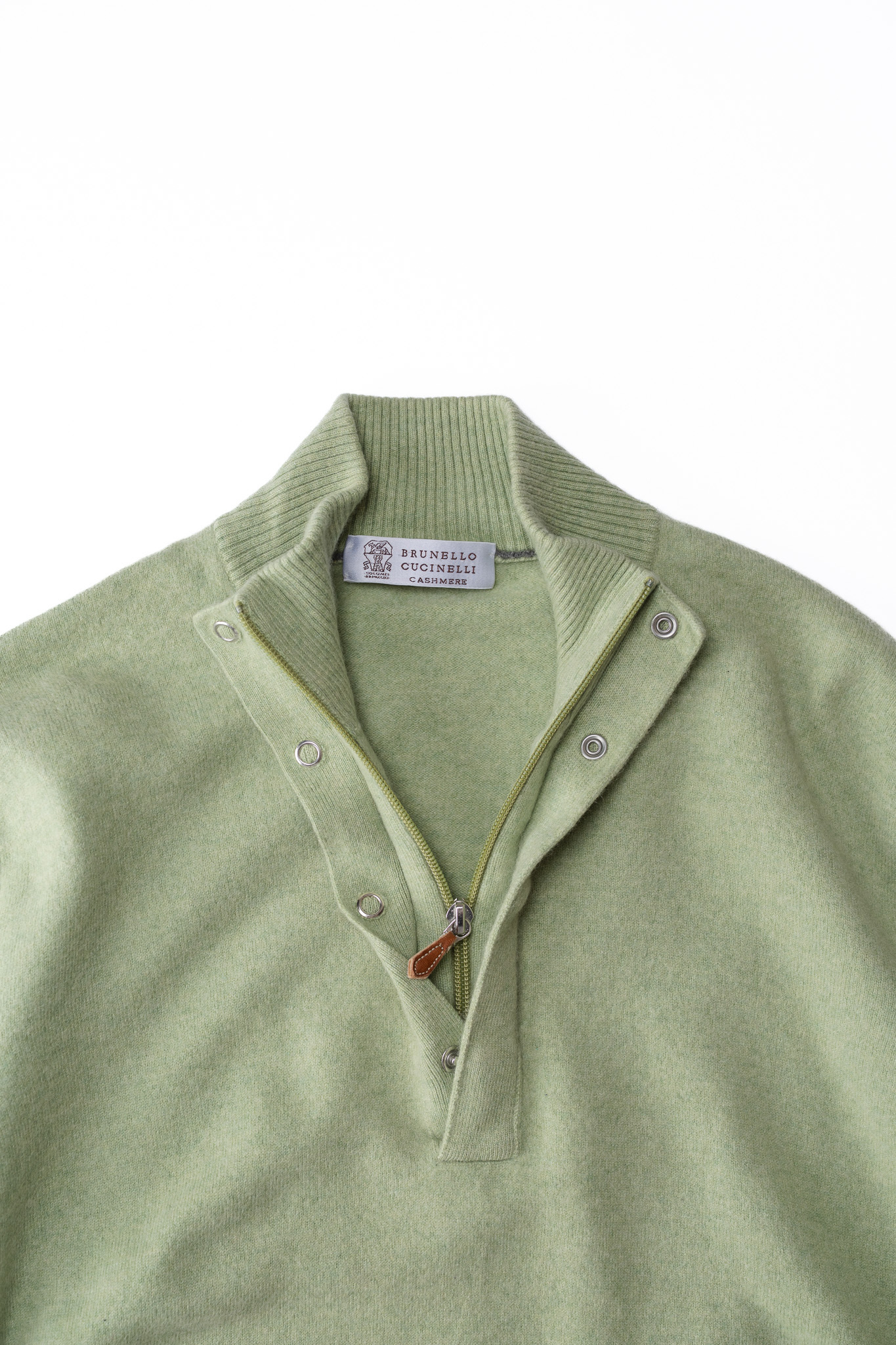 [1990s-2000s] "BRUNELLO CUCINELLI" Pure Cashmere Fly-Front Half-Zip Knit (Made in Italy)