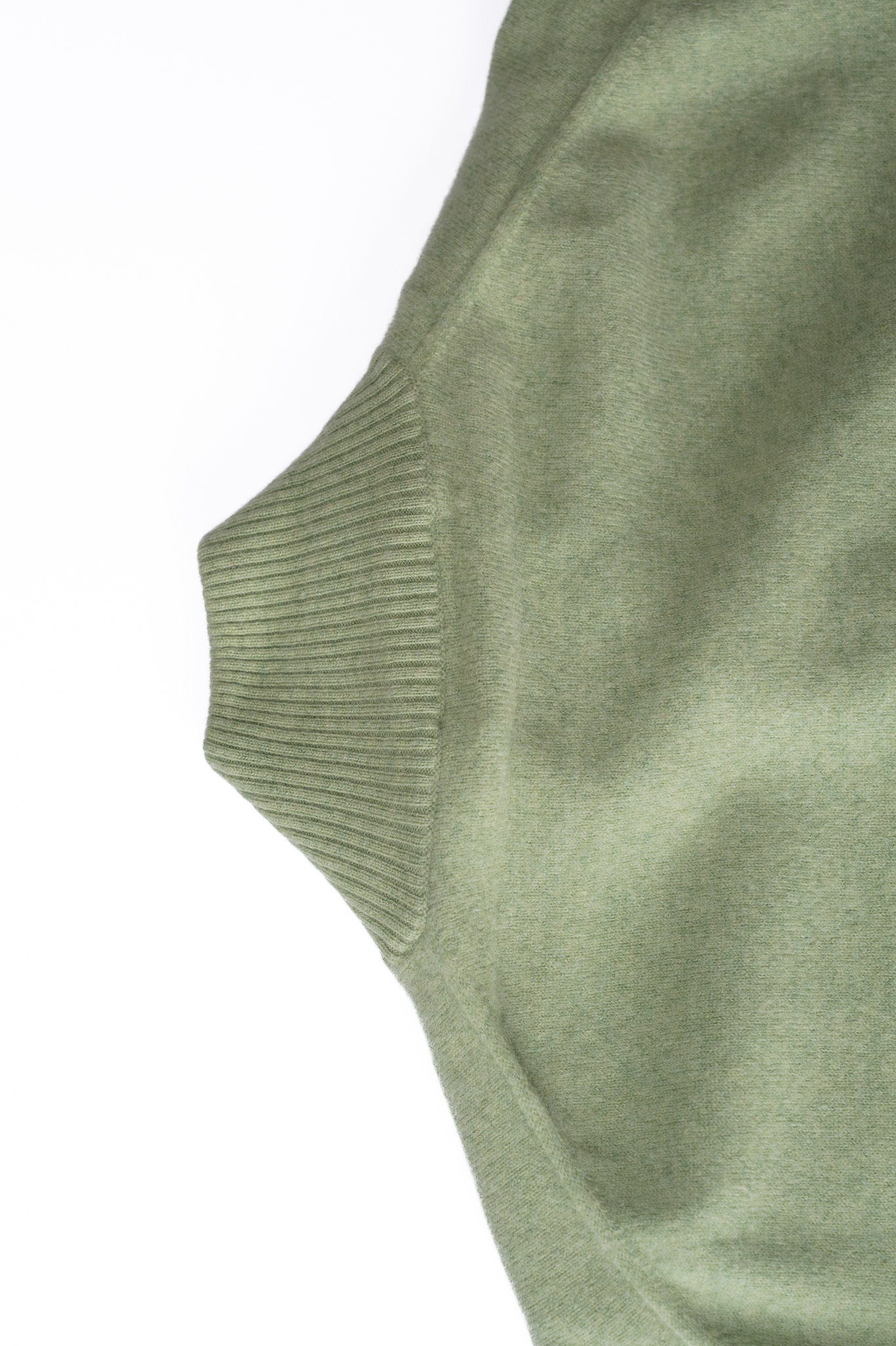 肉厚なカシミヤの編み地を重ね合わせながらも、決して首周りがダボつくことなくスマートに構築する技術は、並のニットメーカーでは到底到達できない領域。