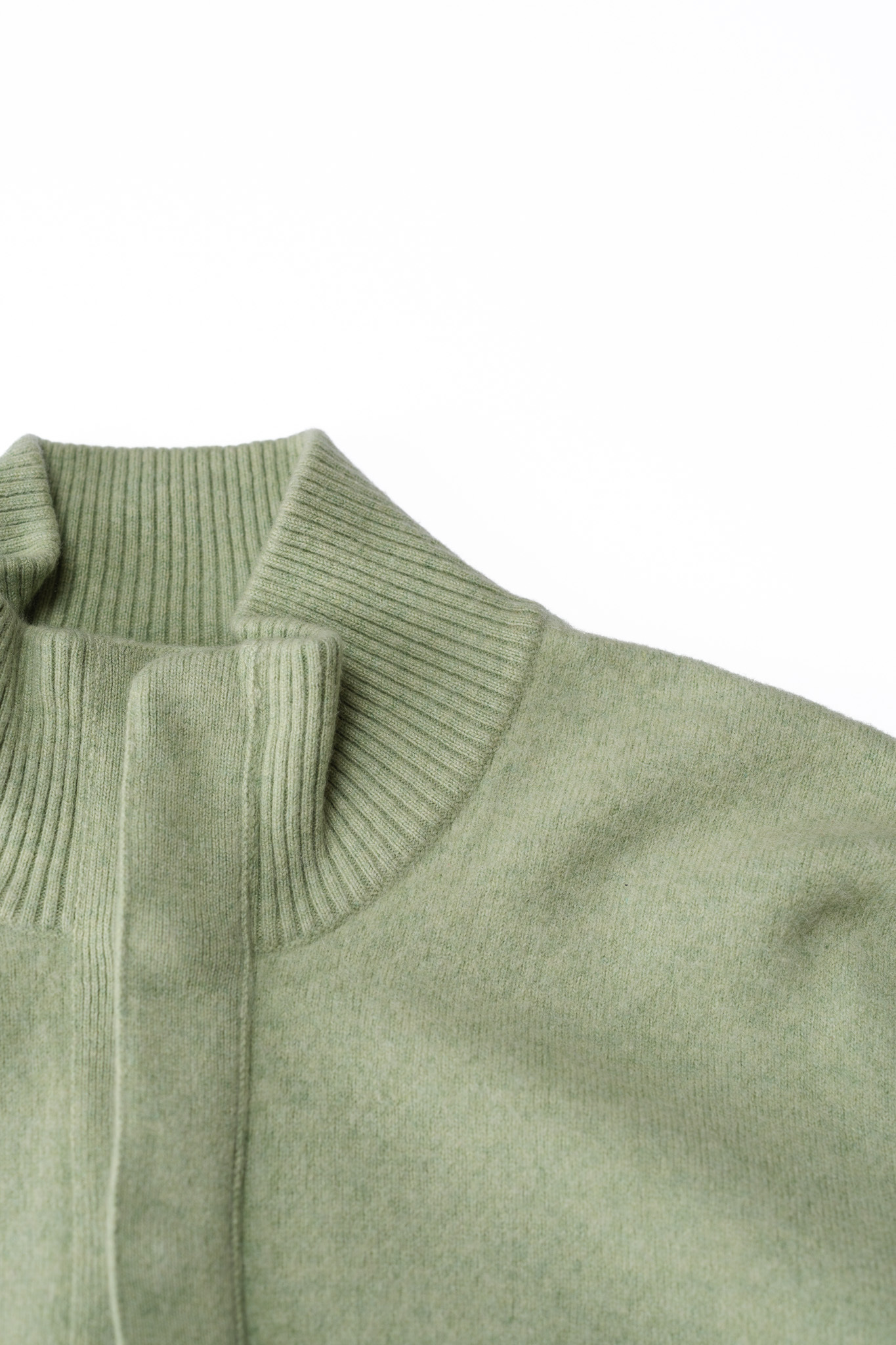ジッパーの引き手には温もりのあるレザーパーツを採用し、柔らかなカシミヤ素材との間に絶妙なコントラストを生み出す心憎い演出。