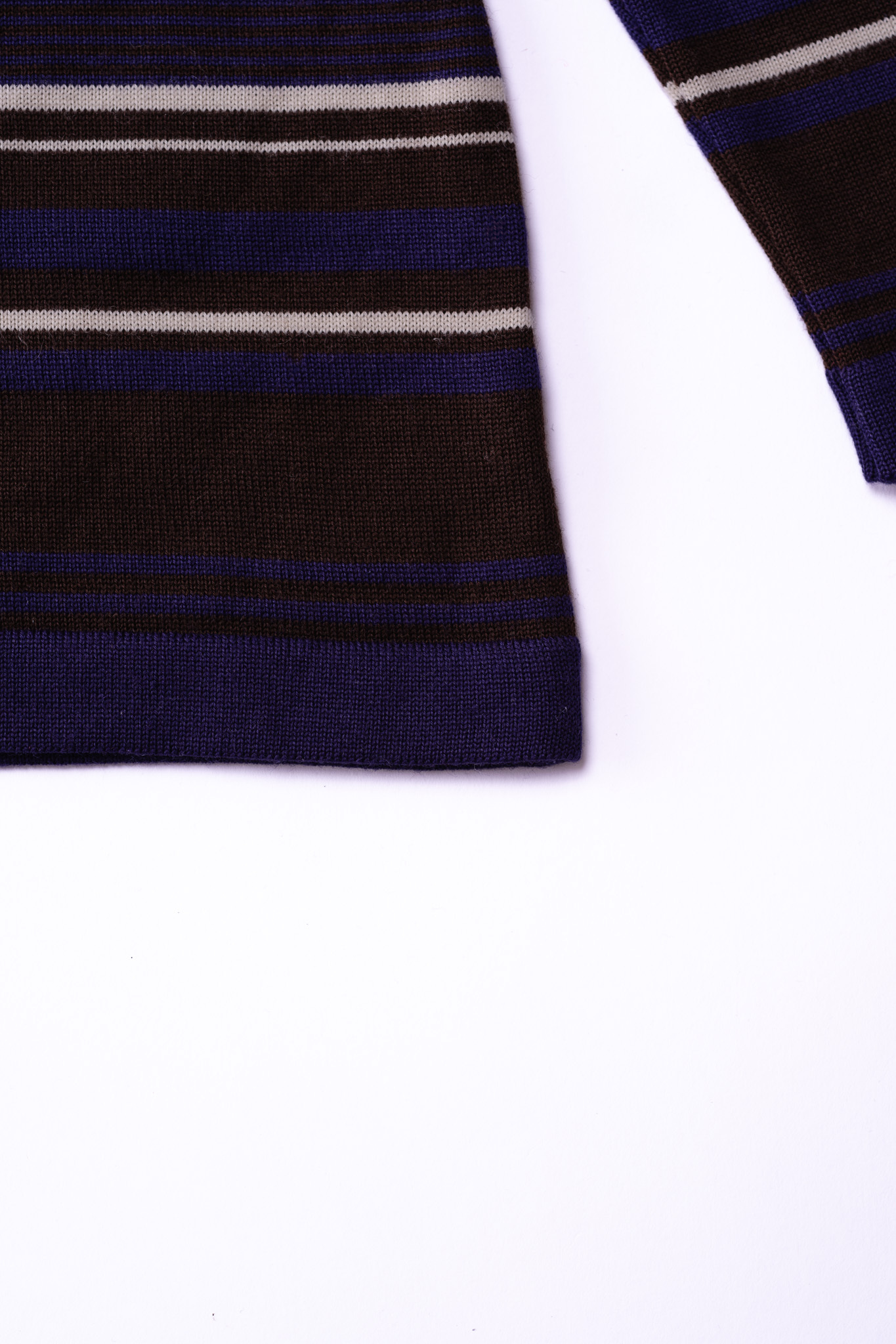 一枚で着用した際にも確かなオーラを放ち、ジャケットやコートのインナーとして合わせた際にも、胸元から覗く緻密なボーダーがスタイリングに深い奥行きをもたらしてくれます。