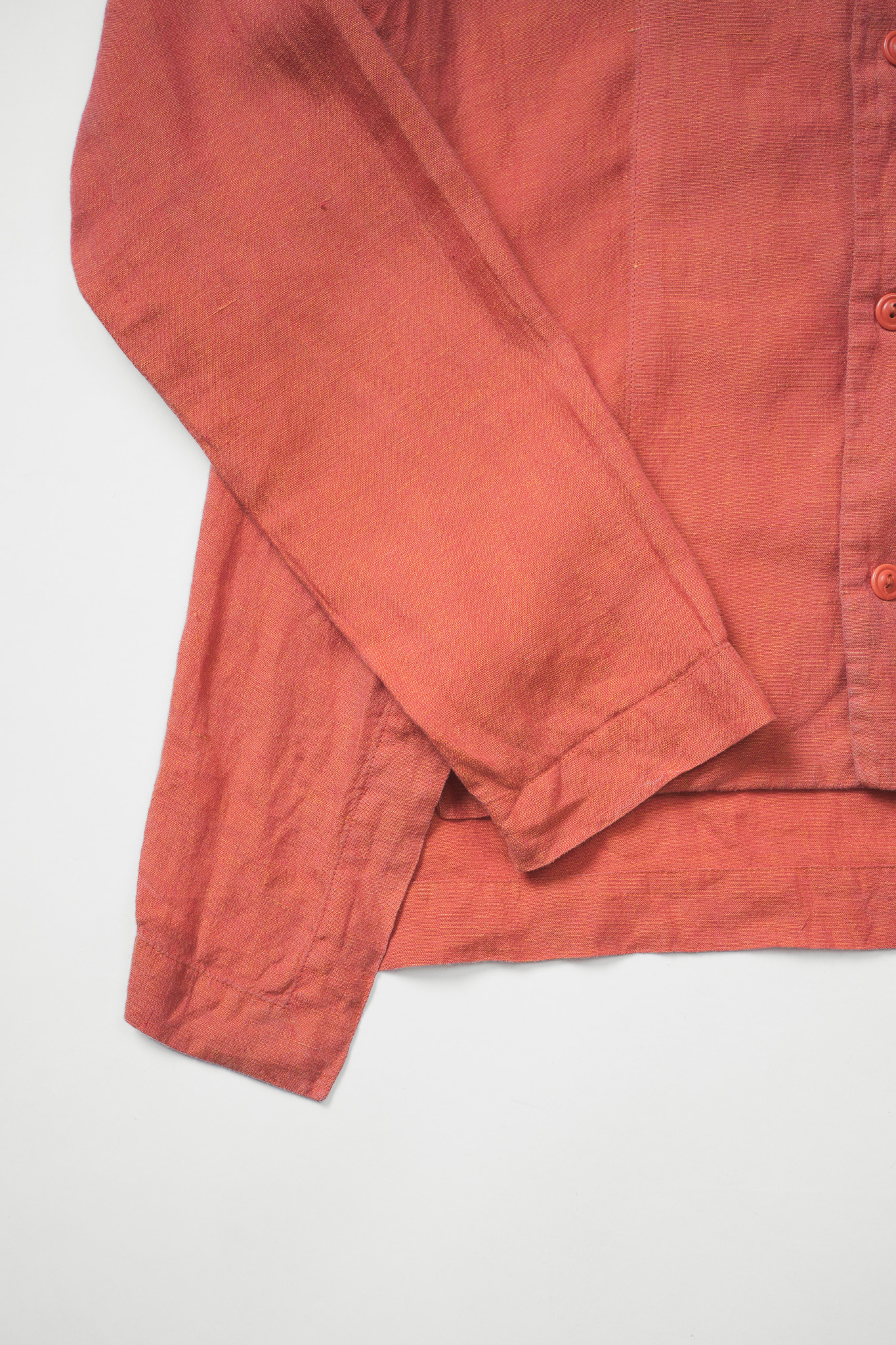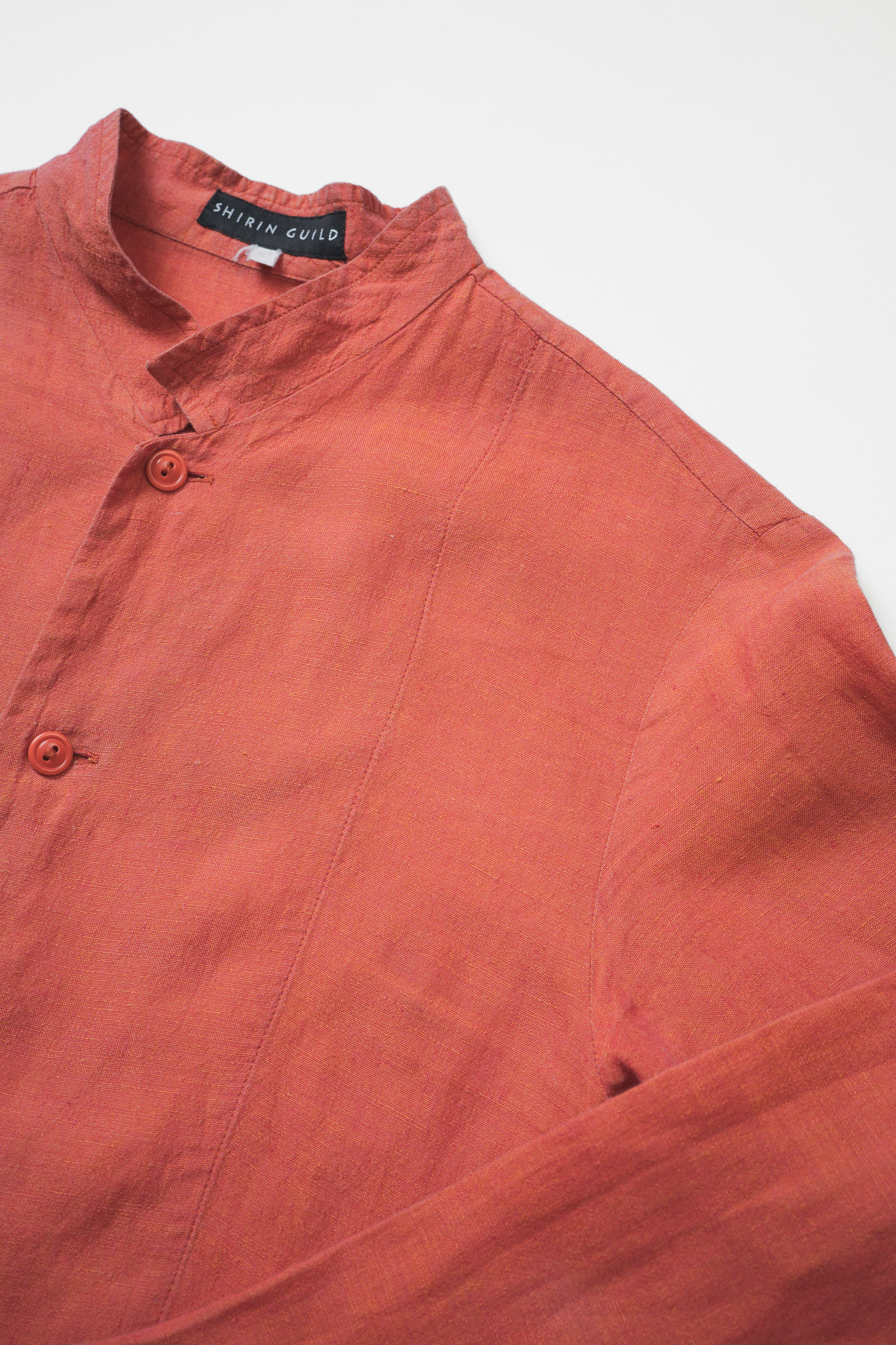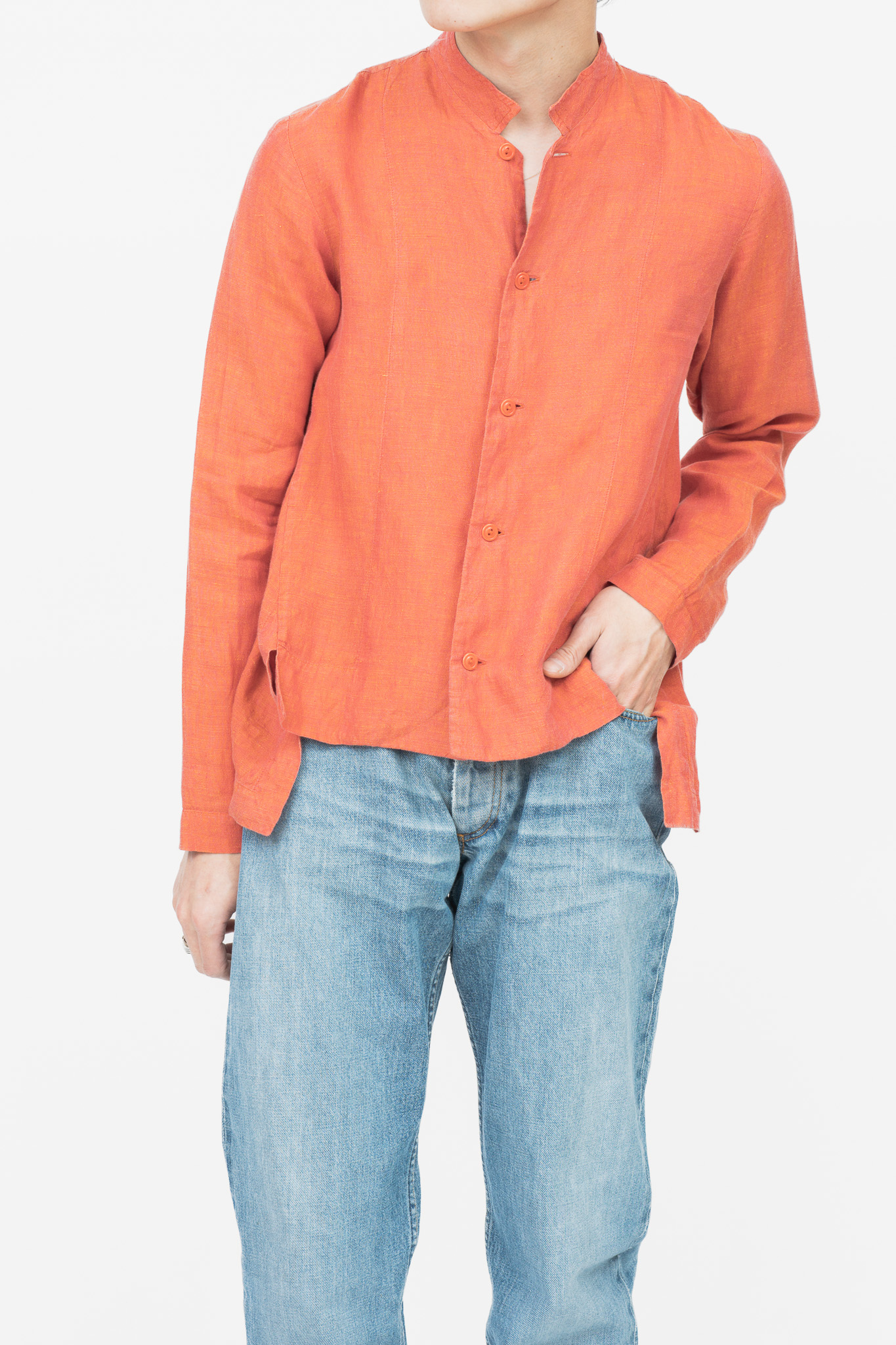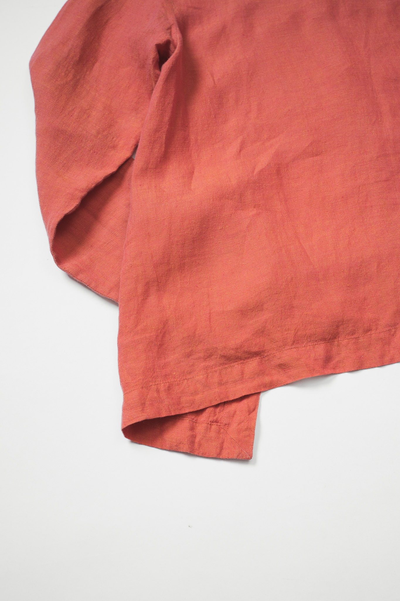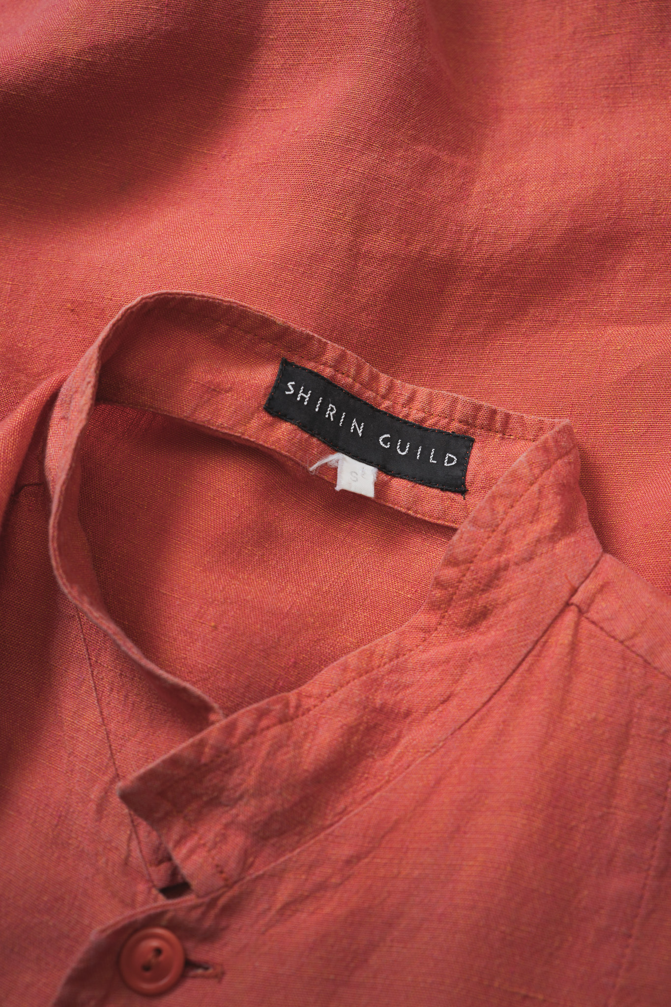 オールリネンの涼やかで軽やかな生地は非常に発色の良いオレンジレッド。