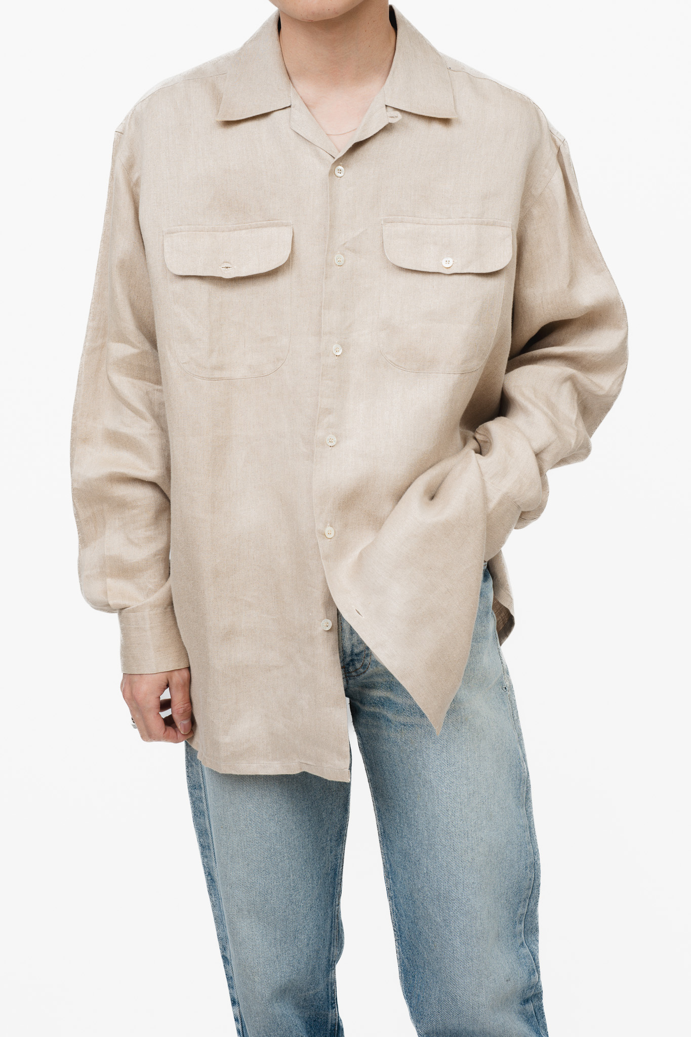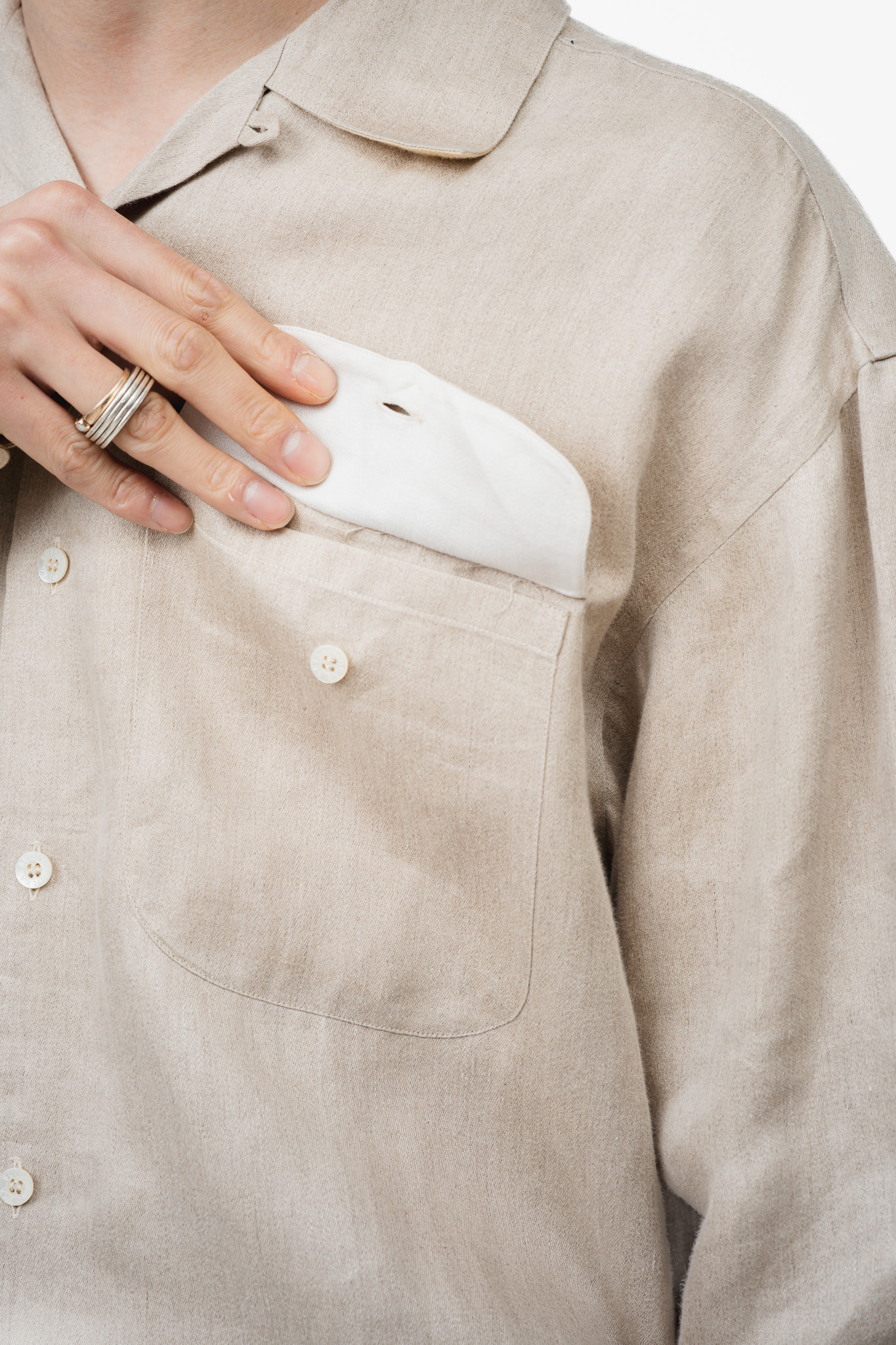 さて、こちらはそんなスルカによるオープンカラーのリネンシャツ。
