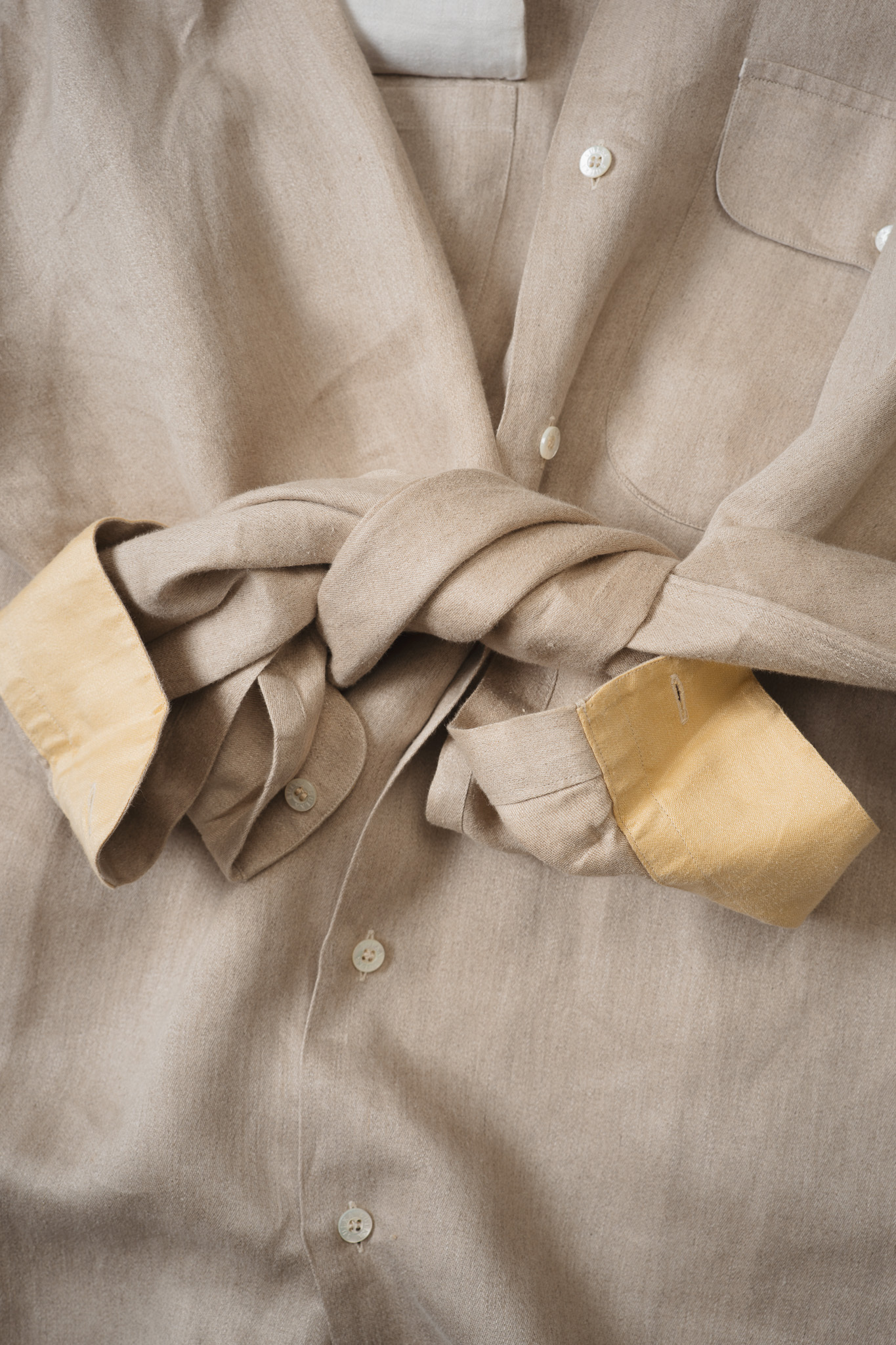 袖を捲ったり襟を立てたり、と言ったスタイリングに関連する動作を行う際に見える裏地はイエロー。