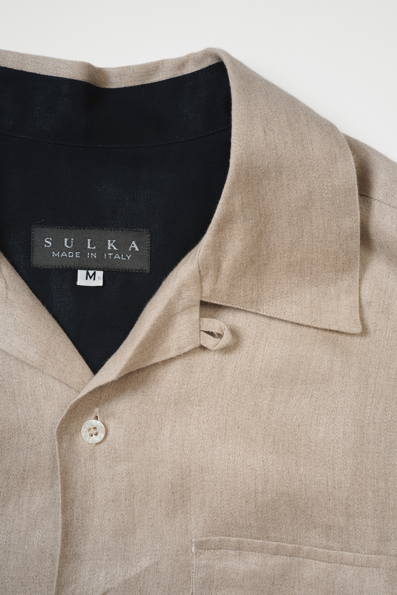 [Late90-00's] "SULKA” Pure Linen Open Collar Shirt (Made in Italy)