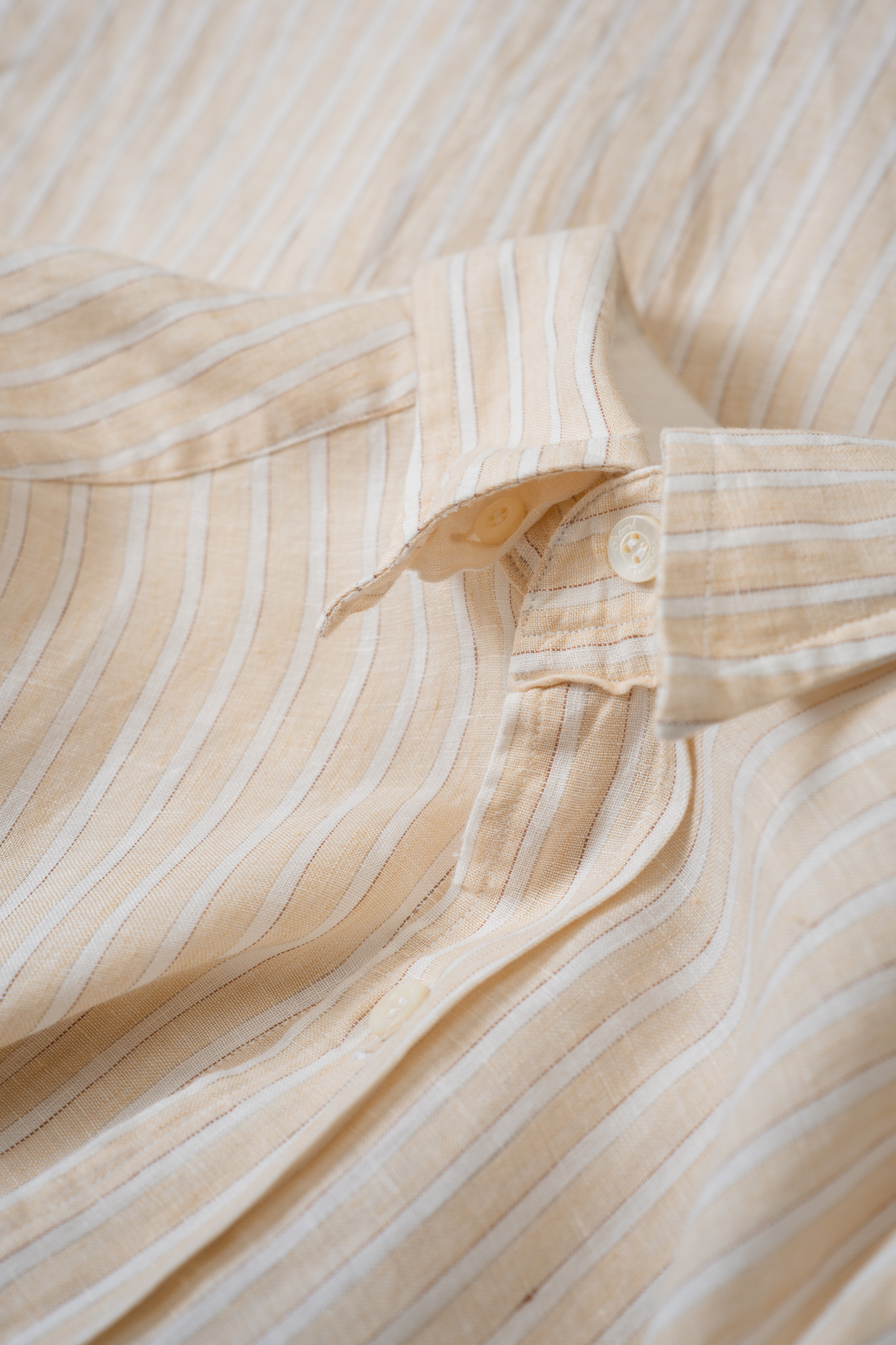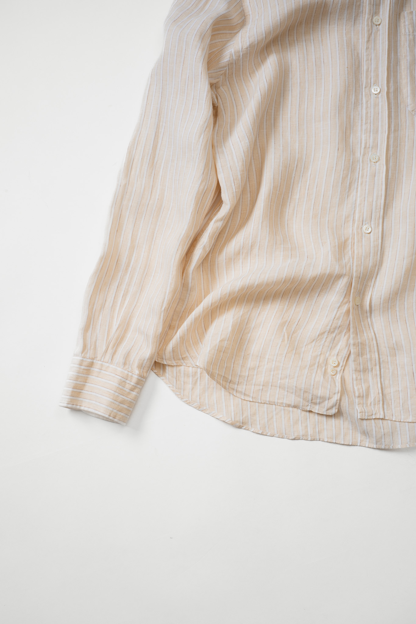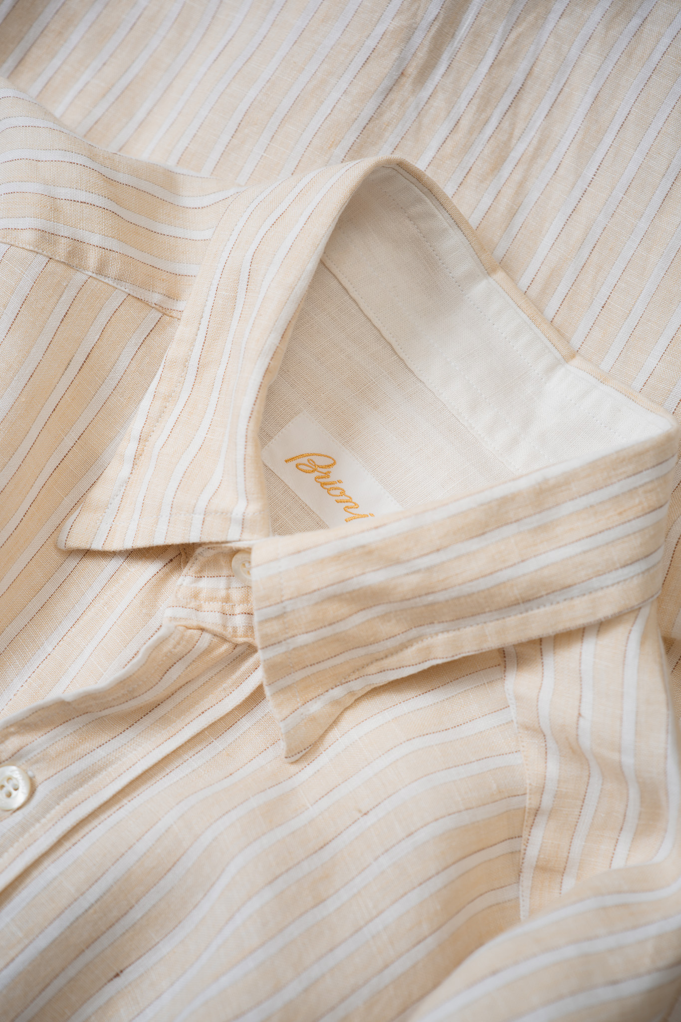 ベージュの地にホワイトのブロックストライプなんてまさにイタリア的な柔らかな印象ですし、柄合わせが完璧なんです。