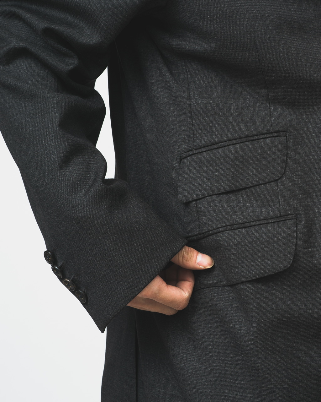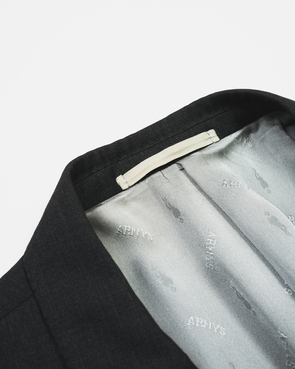 ナチュラルな肩周りはほんのりと雨降らしを感じさせ、ゆるりと前に振られた袖からはテーラーならではの美的感覚がゆえでしょう。