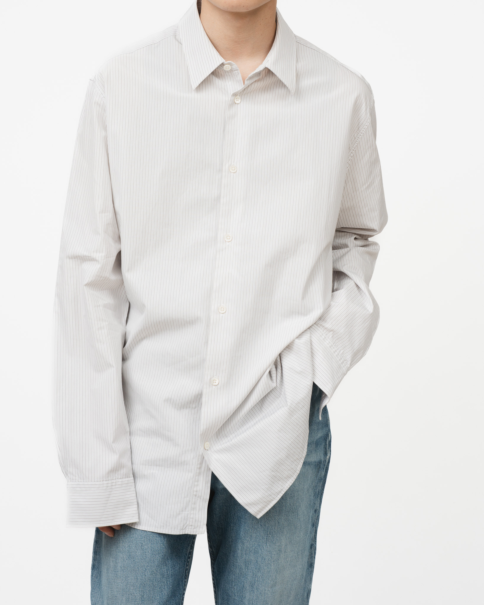 ただのストライプシャツでは終わらない、生地・構造・ディテールのすべてが高次元で調和しているからこそ、着る人の佇まいに自然と品が生まれるのです。