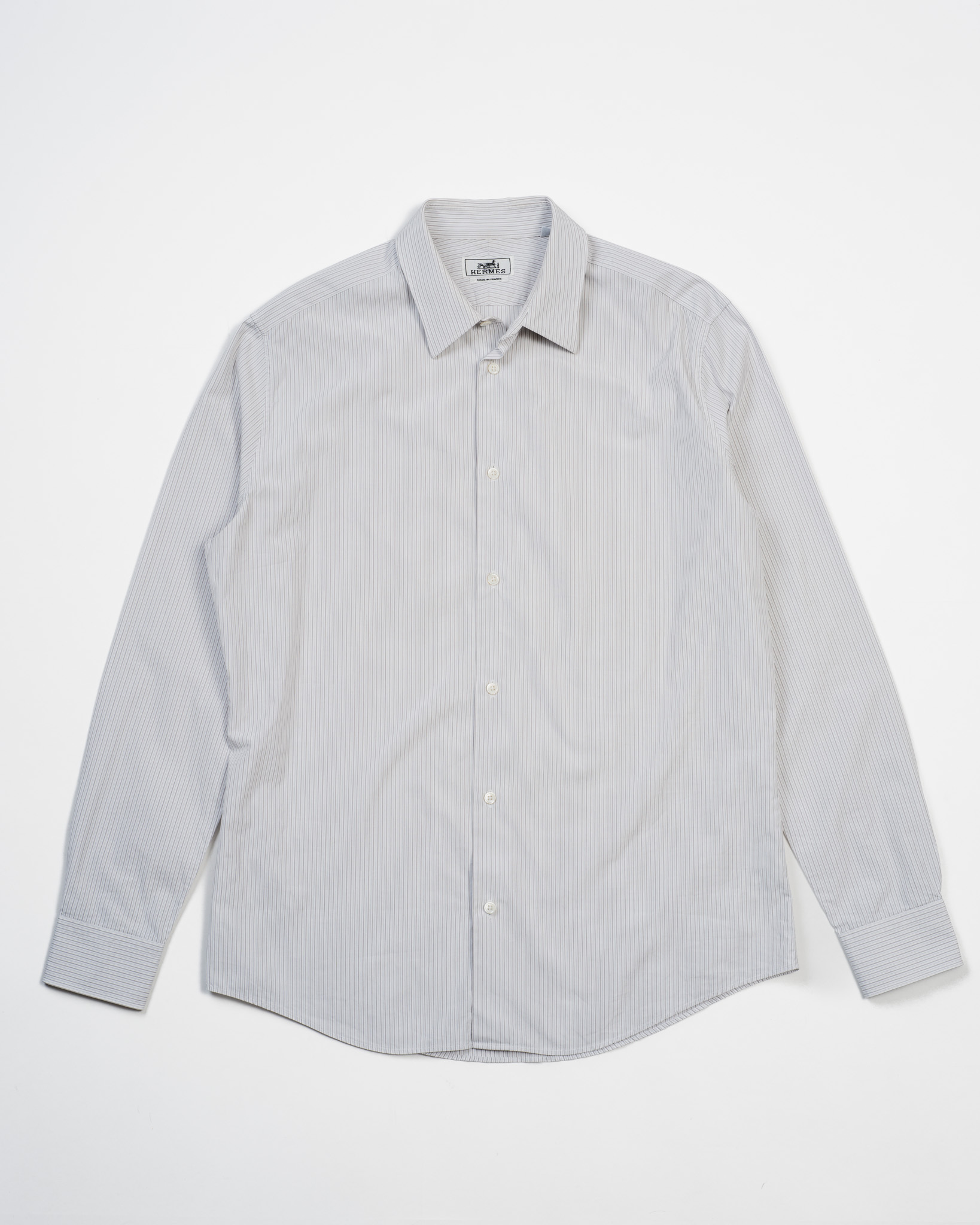 [Early 00's] “Hermès PARIS” Random Stripe Regular Collar Cotton Shirt (Designed by Véronique Nichanian)