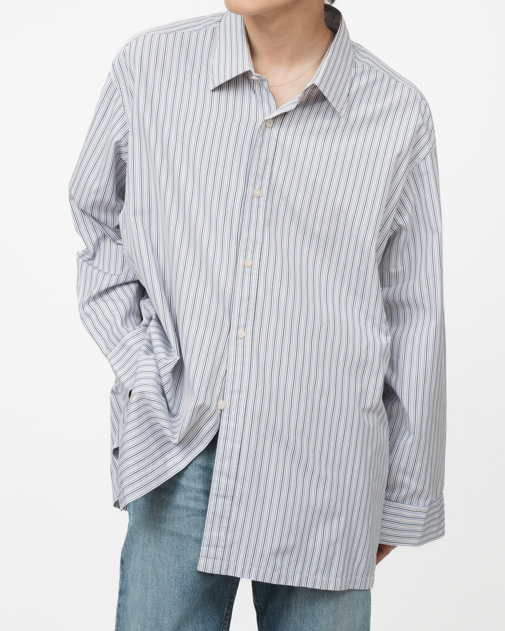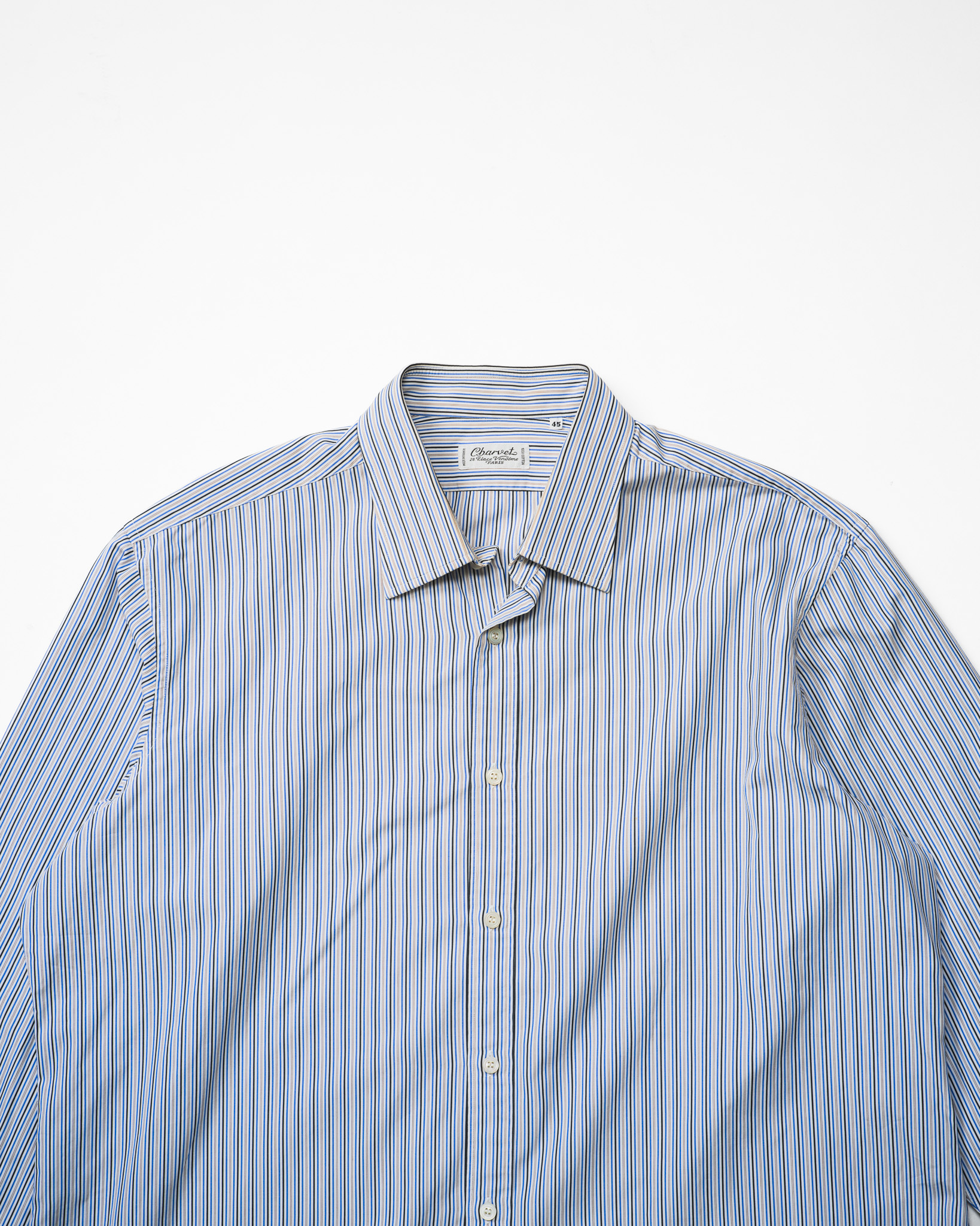 [80’s~] ”Charvet” Multiple Stripe Regular Collar Cotton Shirt (Made in France, Place Vendôme)