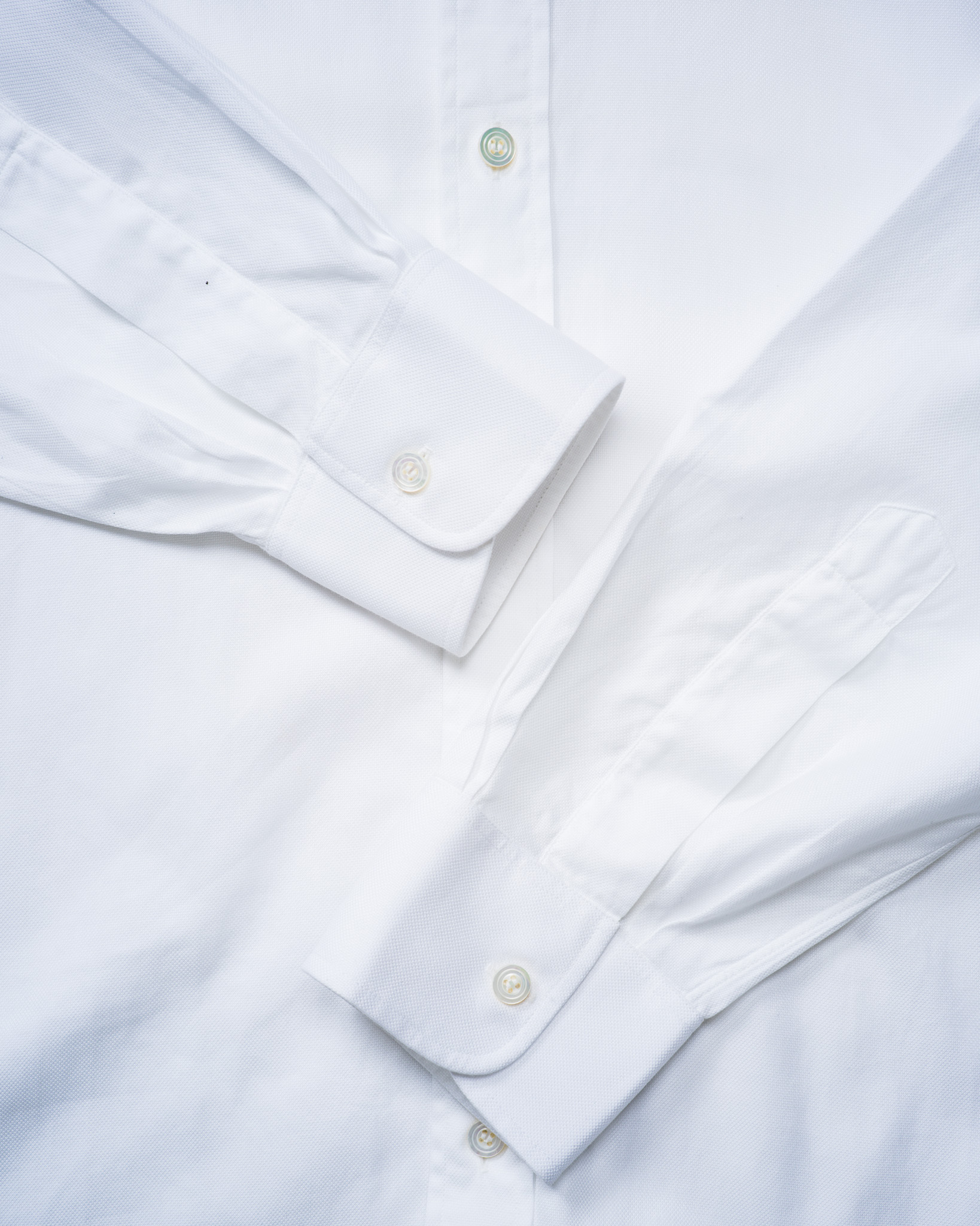 オーセンティックなドレスシャツ然としており、薄手のオックスフォード生地は少しのハリと滑らかな光沢を持ち、その輝きは下卑たものでなく純然たる品格の高さのみを醸し出しております。