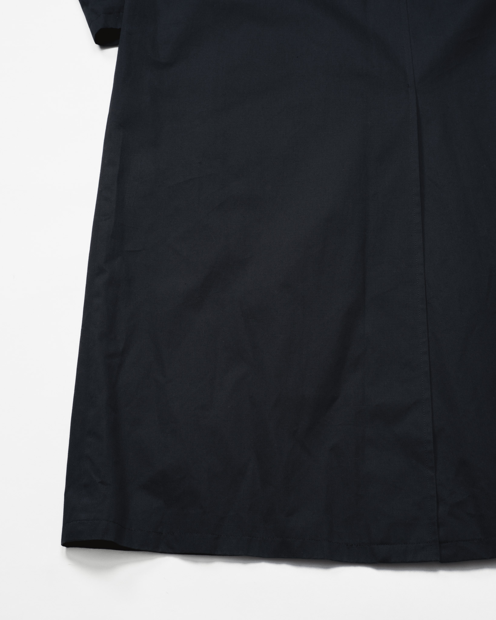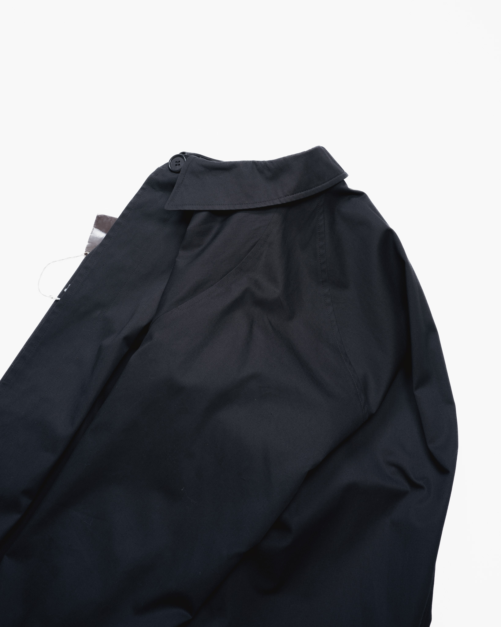 コットンツイルに載せられたピュアブラックは色落ちなく退廃的なものではなく純粋なるモードな方向性。