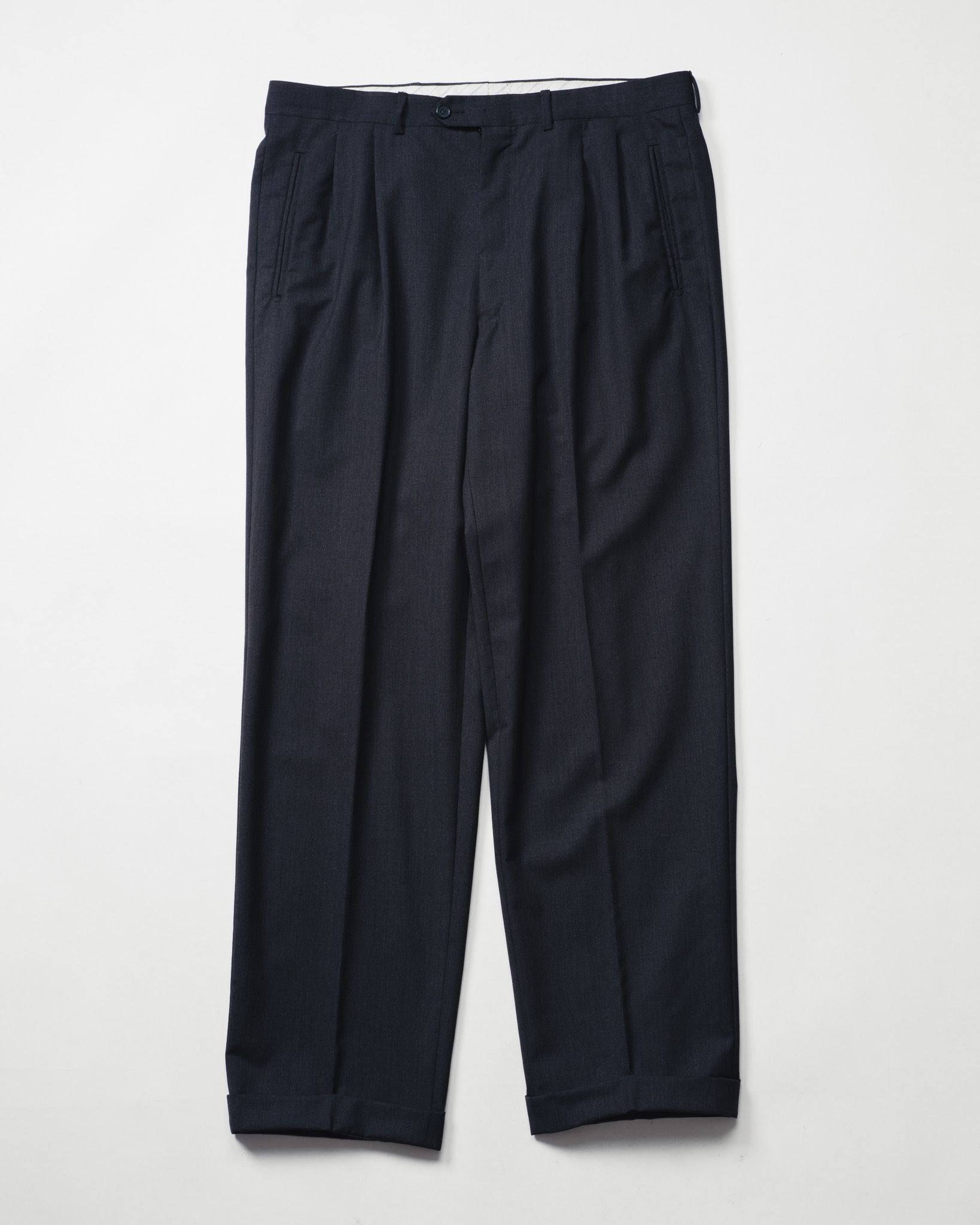 シルエットは緩やかなテーパードを描き、現代よりも少しワイドな裾幅23cmという数値からも想像できるように、比較的クラシックなトラウザーズの様相を呈しております。