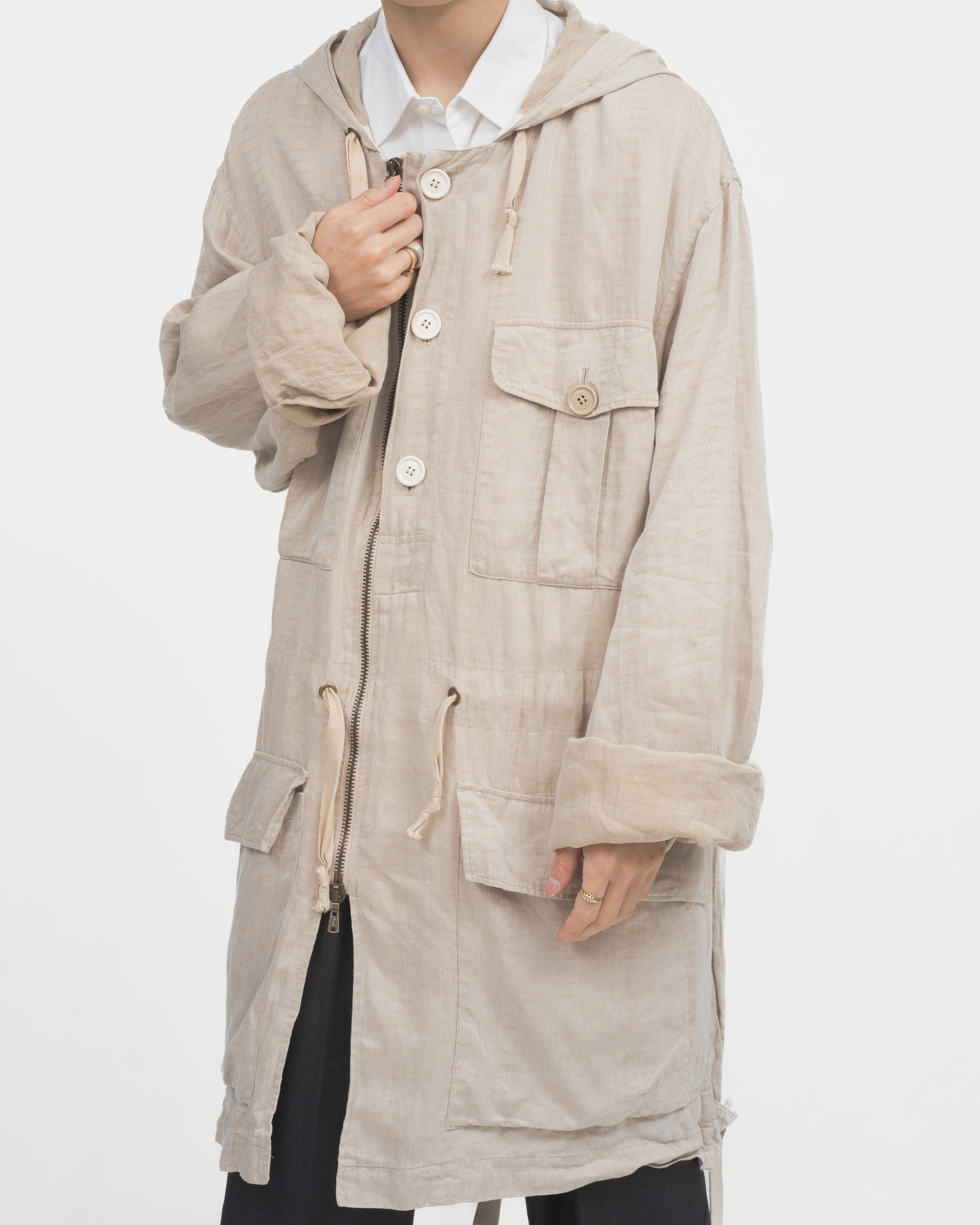 モードの帝王、イヴサンローランがリヴゴーシュで提案するリネンフーデッドジャケットのご紹介。