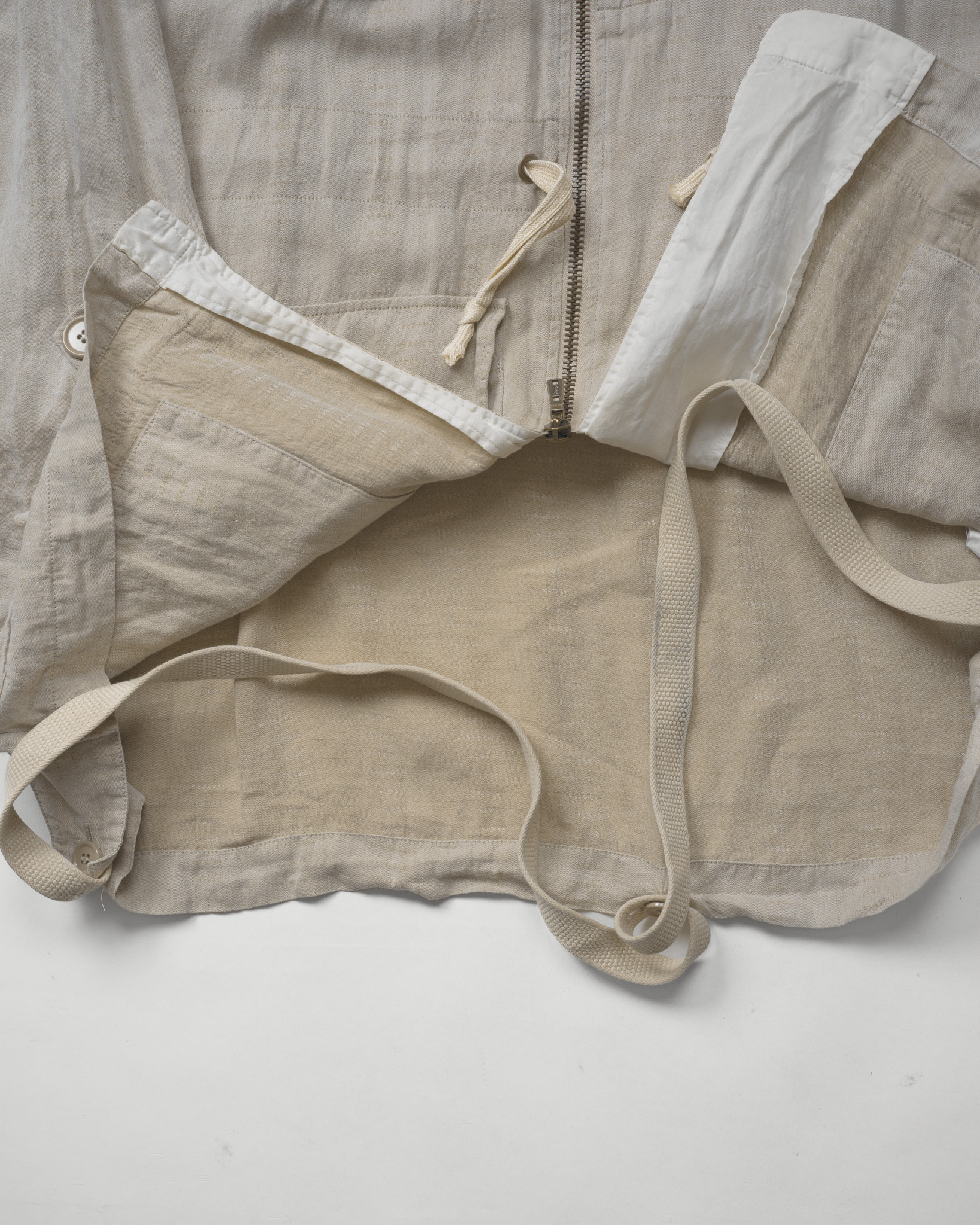あえて機能性を持たせた化学繊維ではなく、プルンプルンなリネン地を選択。