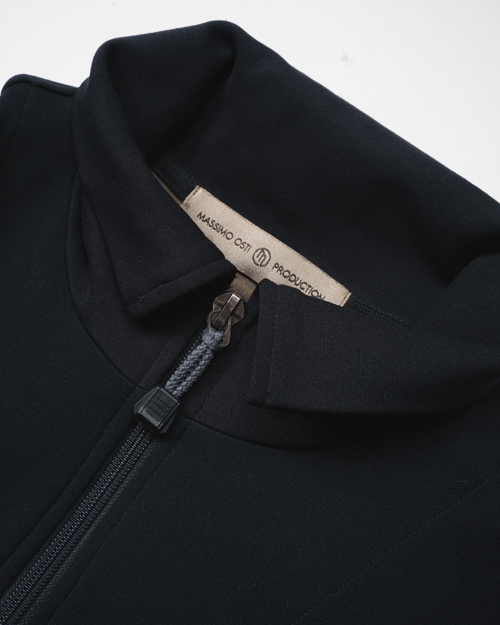 当時のそれらのトラックジャケットはかなりネックが高く、体を動かす際に首や顎に当たるために開けられ、ネックを寝かすことが多く、結局上まで閉めている状態の方が珍しいくらいでございまして、とするとオスティが黙ってはいませんね。