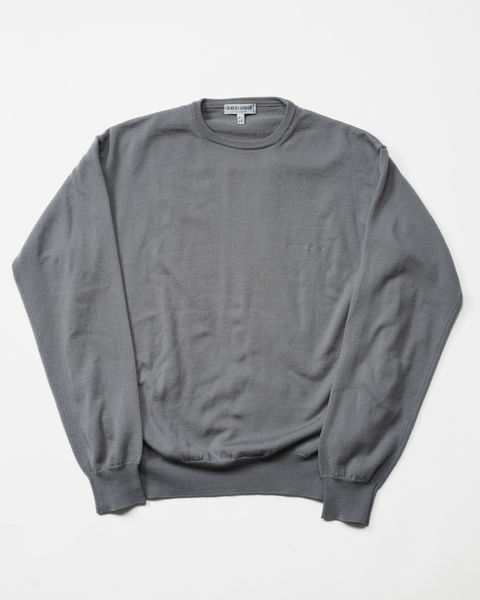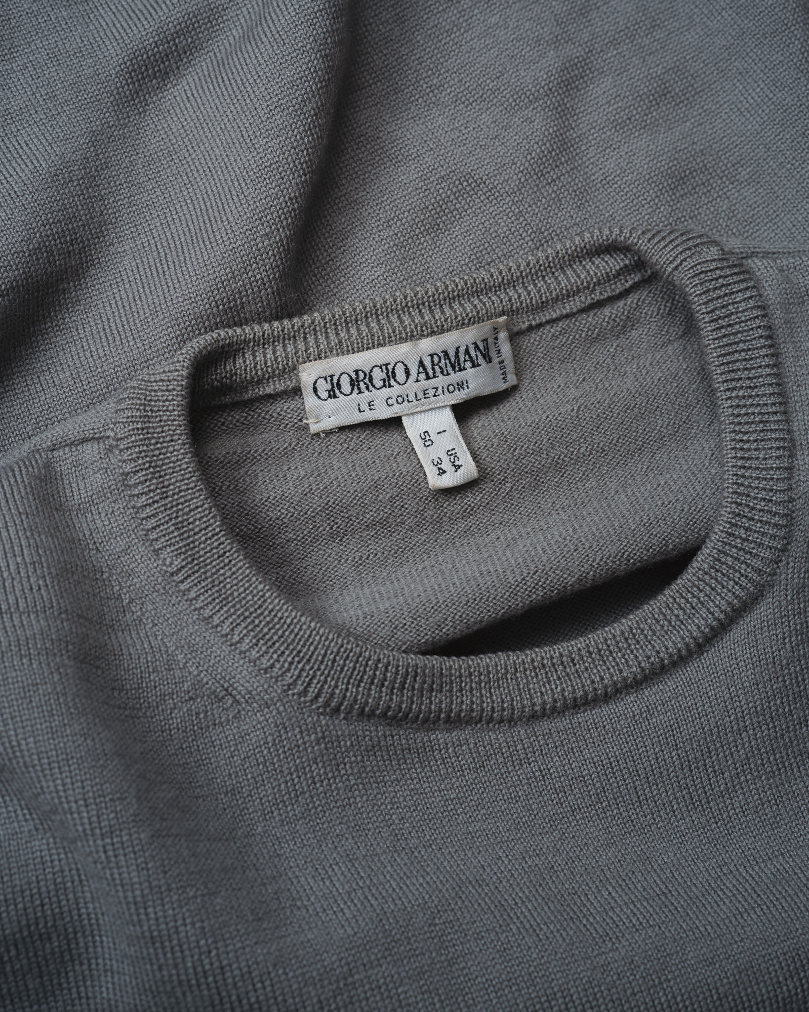 [Early 1990’s] “GIORGIO ARMANI, LE COLLEZIONI” High Gauge Merino Wool Crew-Neck Knit Sweater (Made in Italy)