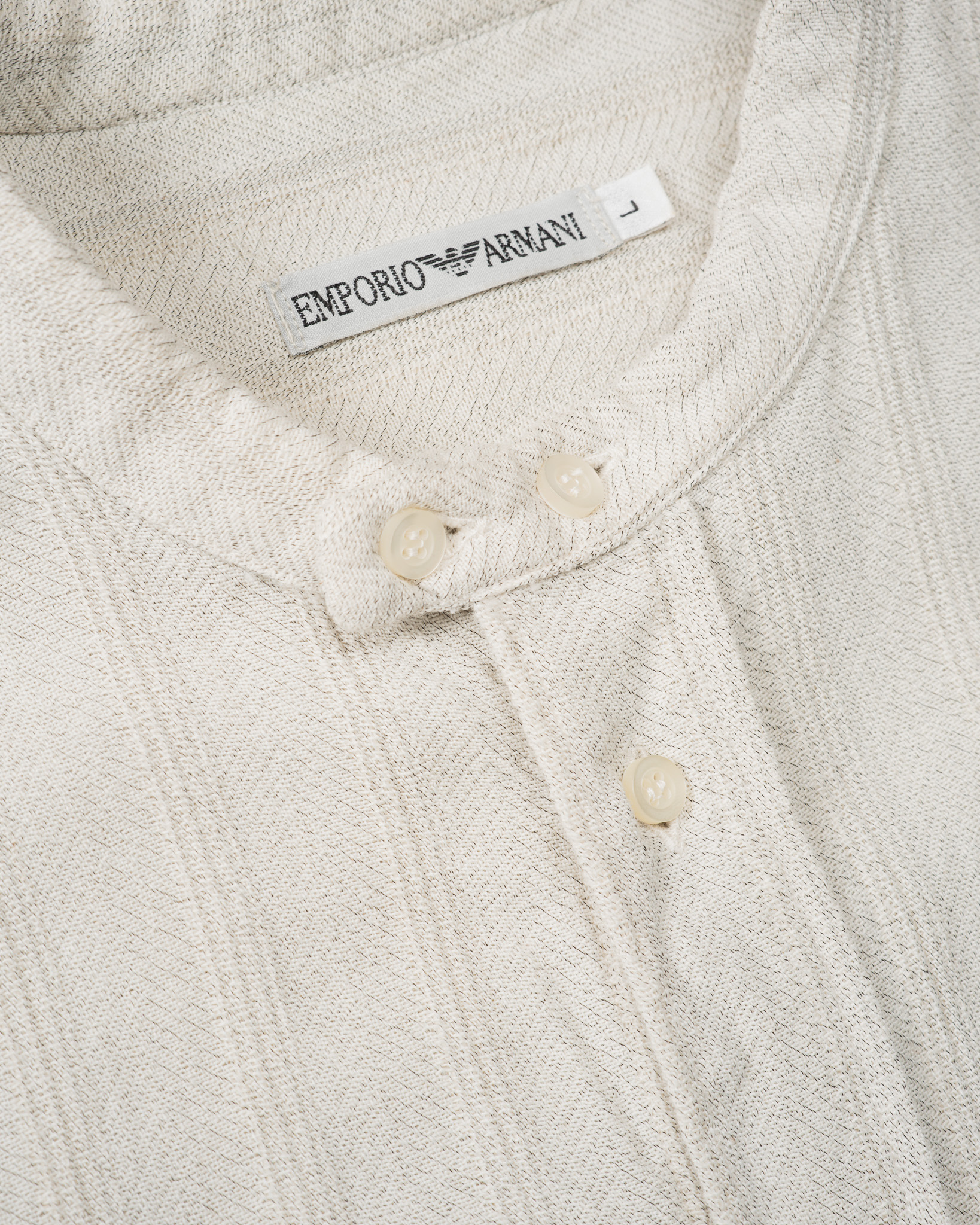 [90’s] "EMPORIO ARMANI” Viscose Cotton Wool Band Collar Shirt (Made in Italy)