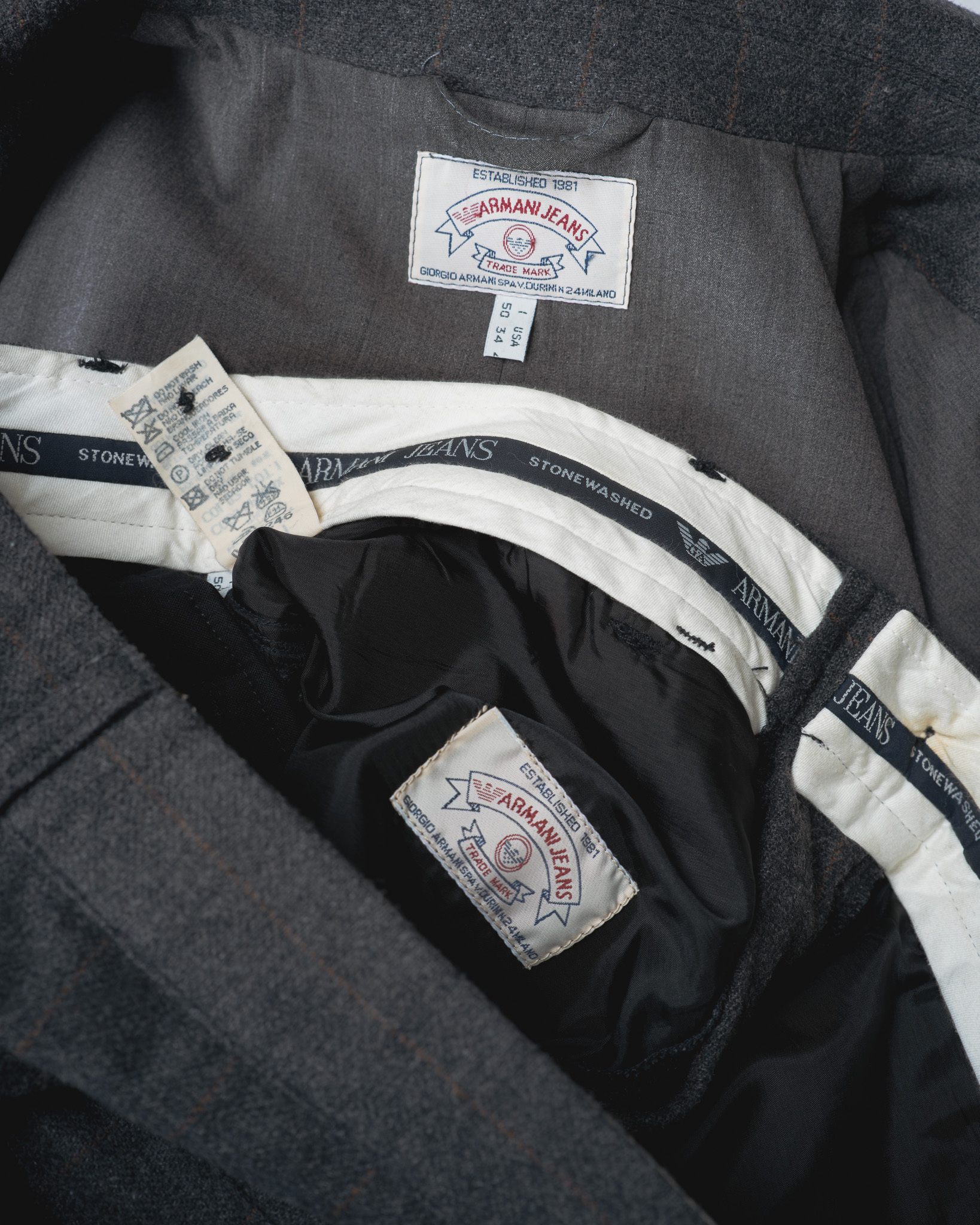 [1990’s] “ARMANI JEANS” Wool Stripe Set-Up (Made in Italy)