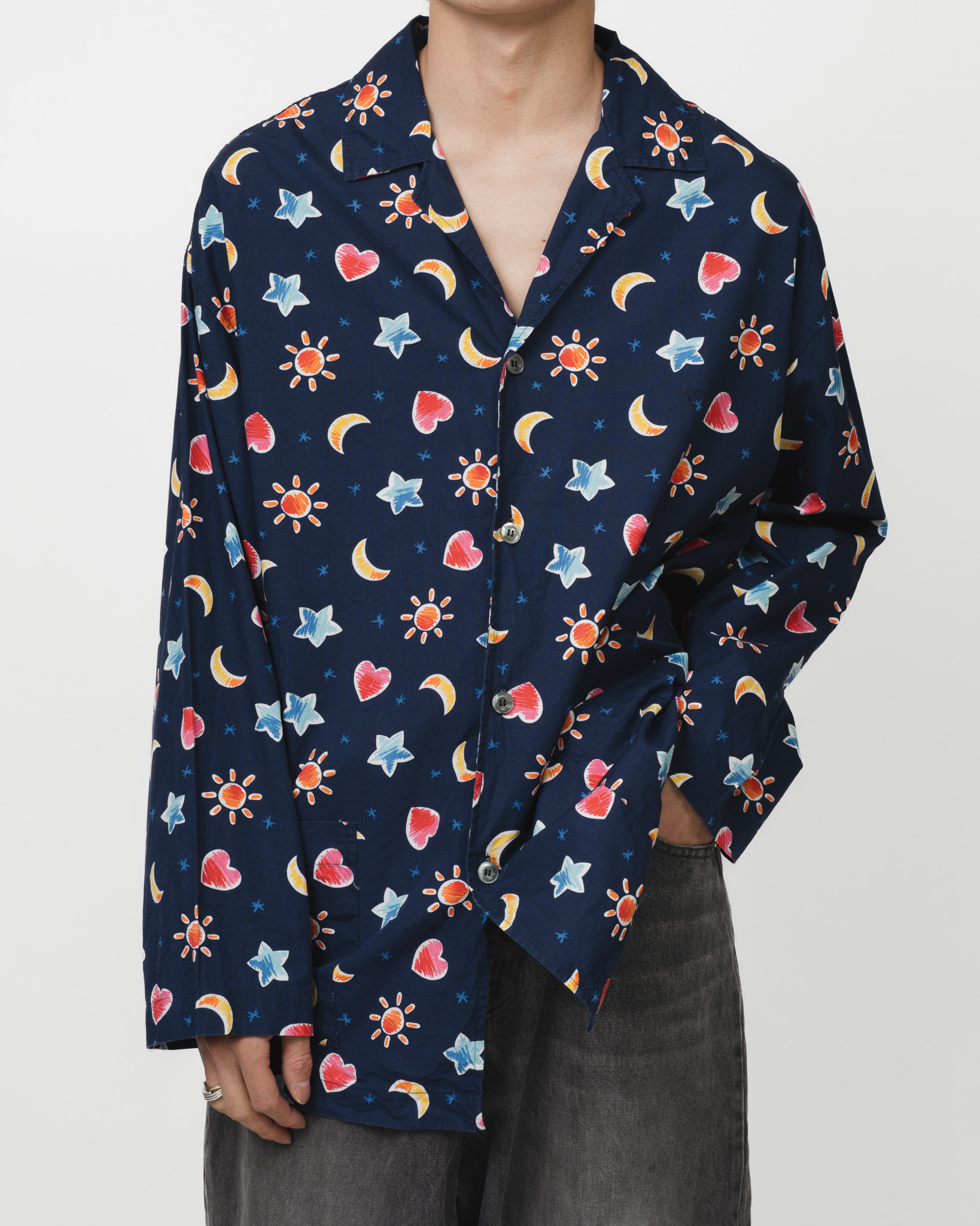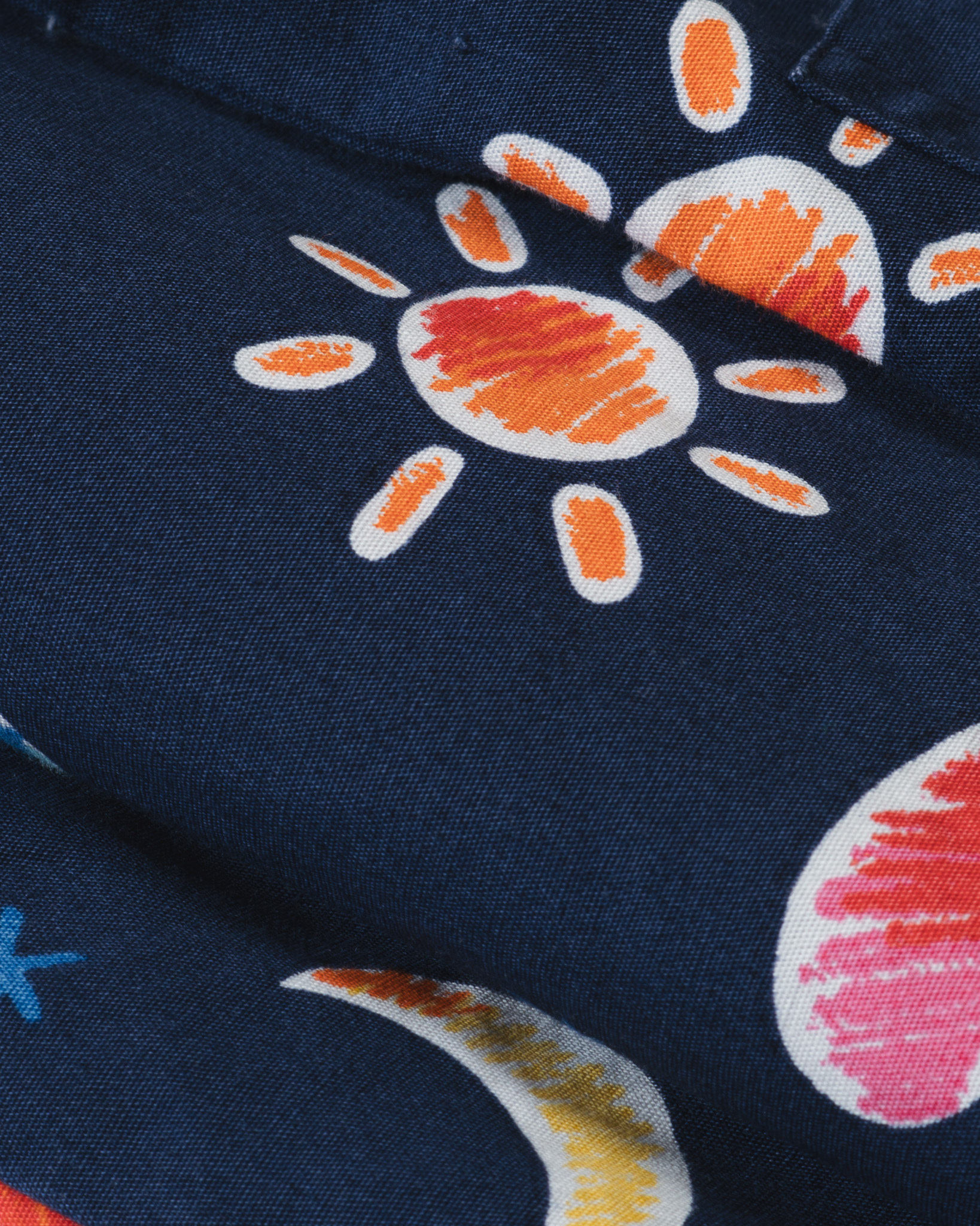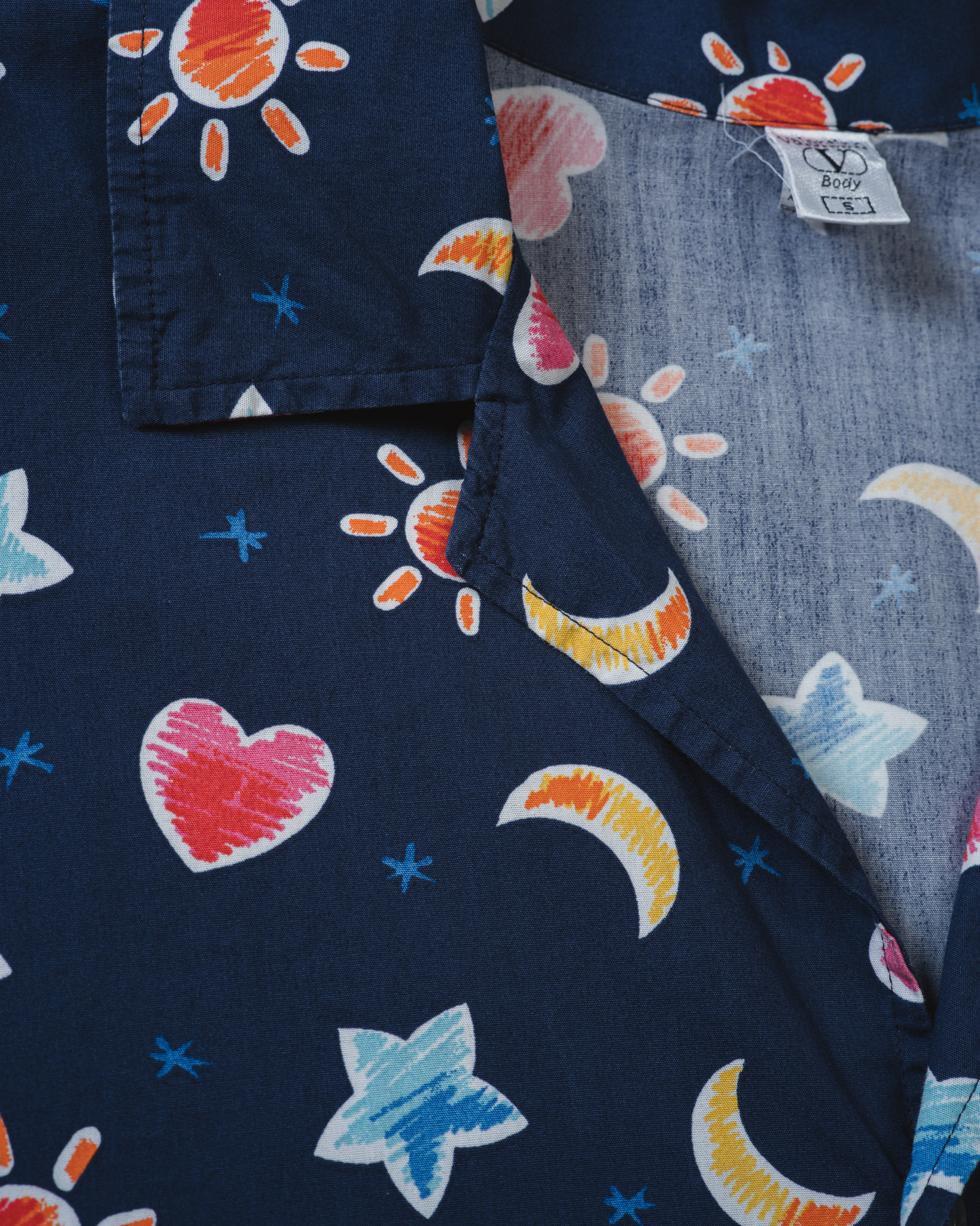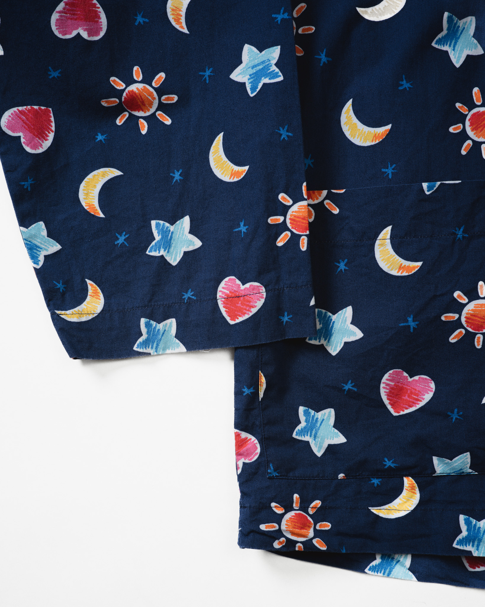 夜空のようなネイビーを地にお月様やらお星様やらハートちゃんやらで随分とドリーミーだなあ、と思っておりましたらお天道様までおられるじゃございませんか。しかしそれもまた夢幻的でやっぱりドリーミー。