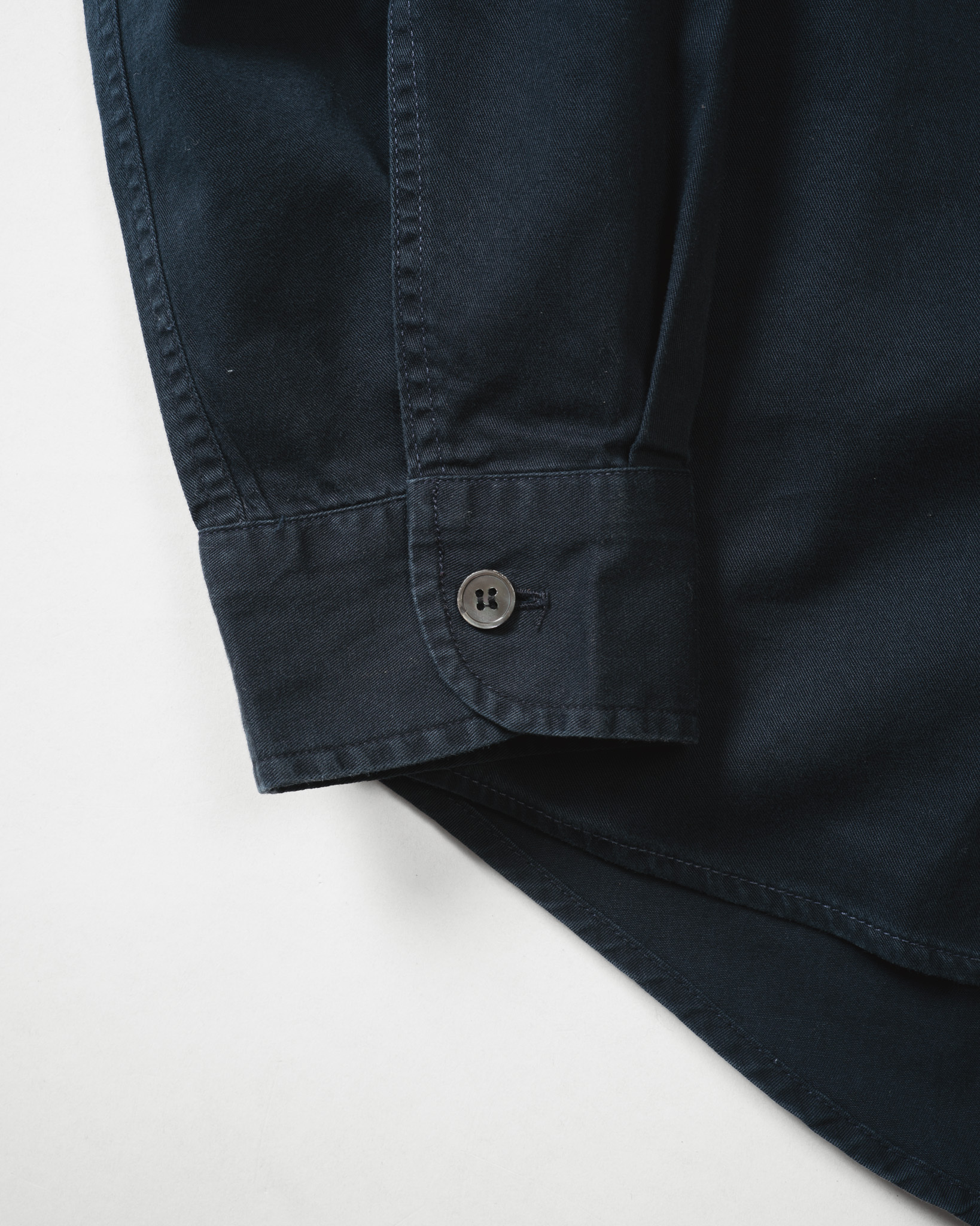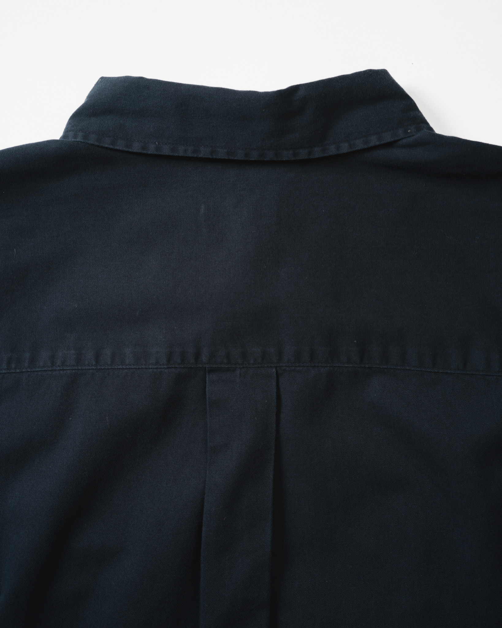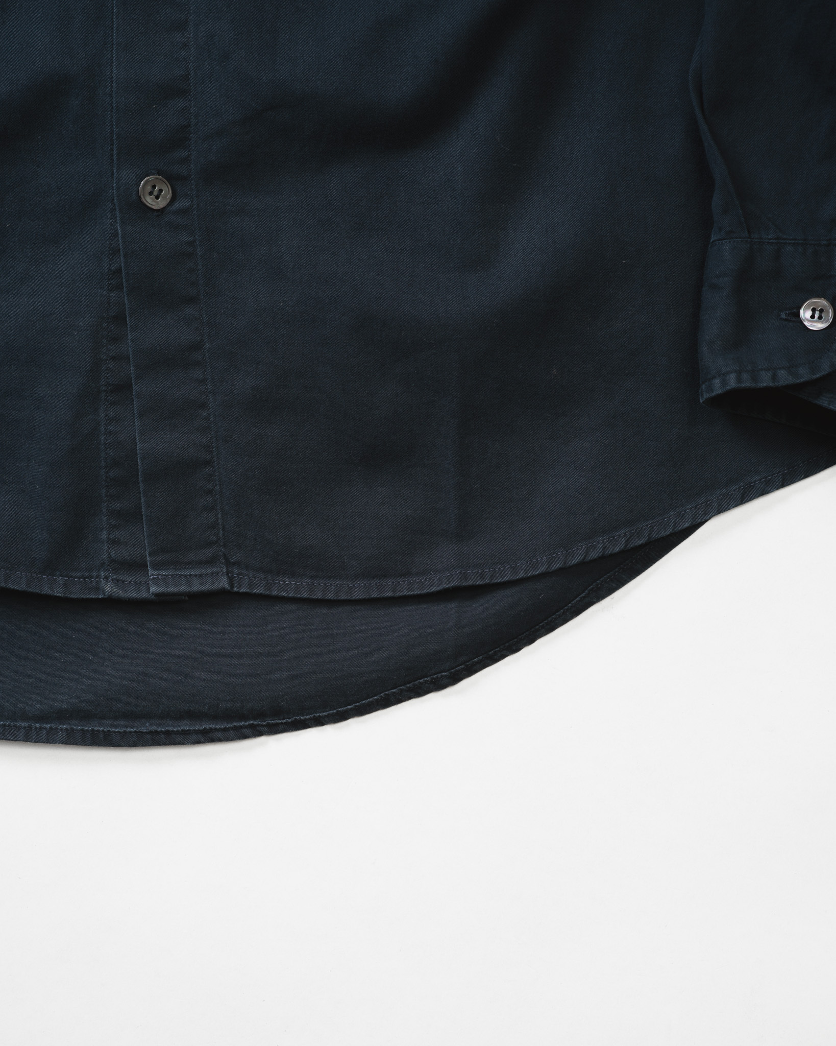 ああそうか成程これはワークシャツなんだな、とようやく理解いたしまして、そうとなれば途端に見方も変わるものでございまして、上述の仕様やシェイプの入らないボディや緩いラウンドカットや前後差の付いた裾などの点が一つの線になったわけでございます。