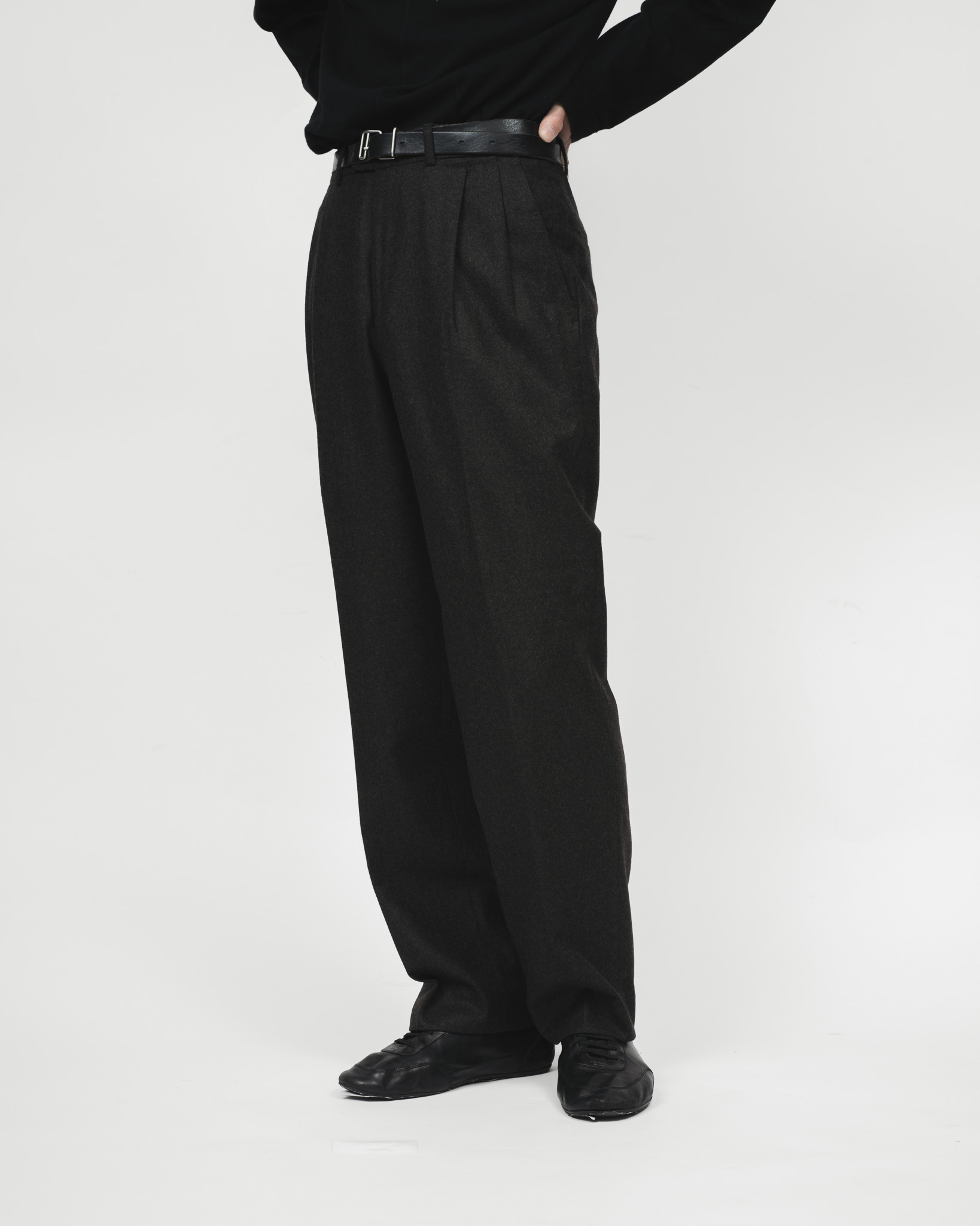 [ 1990-00's ] "Loro Piana" Super 110's Pure Wool Flannel Wide Leg Trousers (Made in Italy)