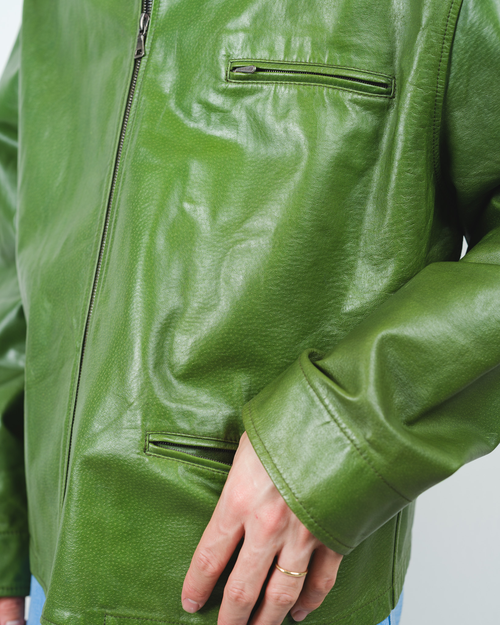 着込むほどにピッグスキン特有のツヤが増し、持ち主の身体の動きに合わせてしなやかに馴染んでいく過程も、生きた素材を扱う醍醐味です。